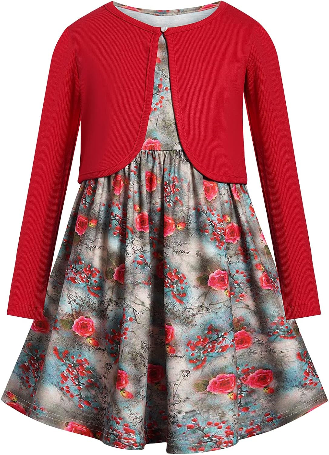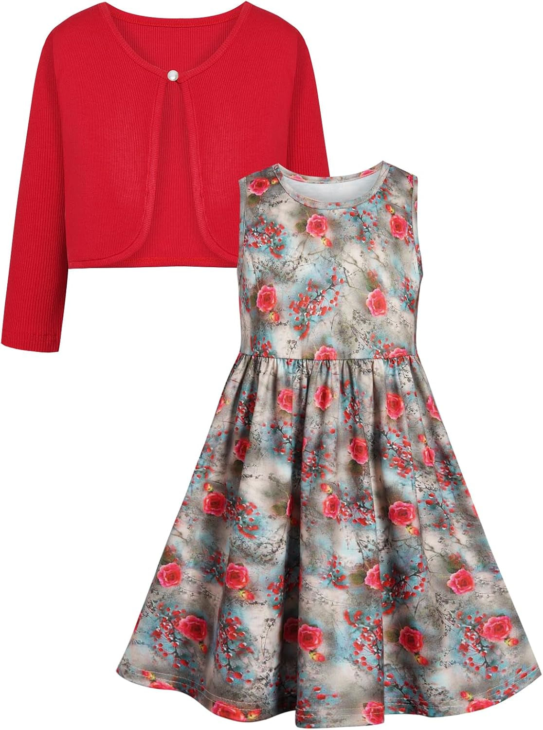 Girls Clothing Set 2 Pieces Long Sleeve Cardigan + Sleeveless Floral Print Dress Sets and Outfits