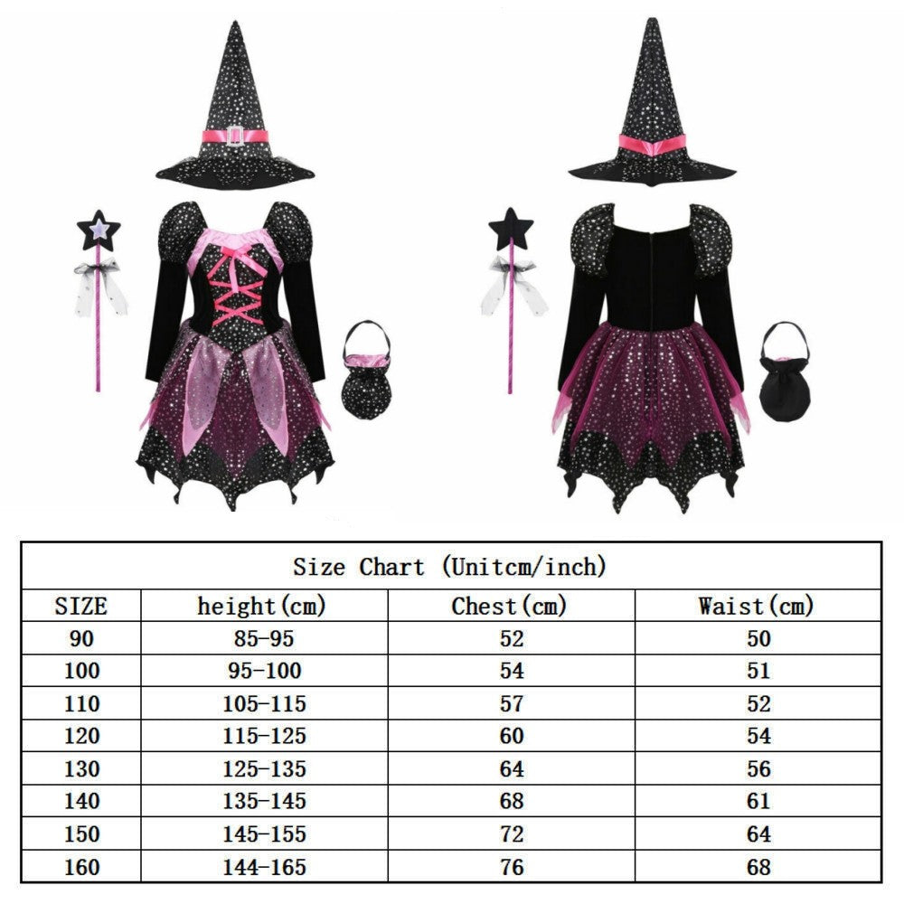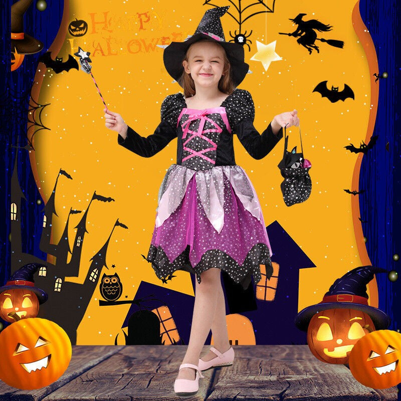 Girls Halloween Witches Hat Fancy Dress Costume Witch Outfit Kids World Book Day