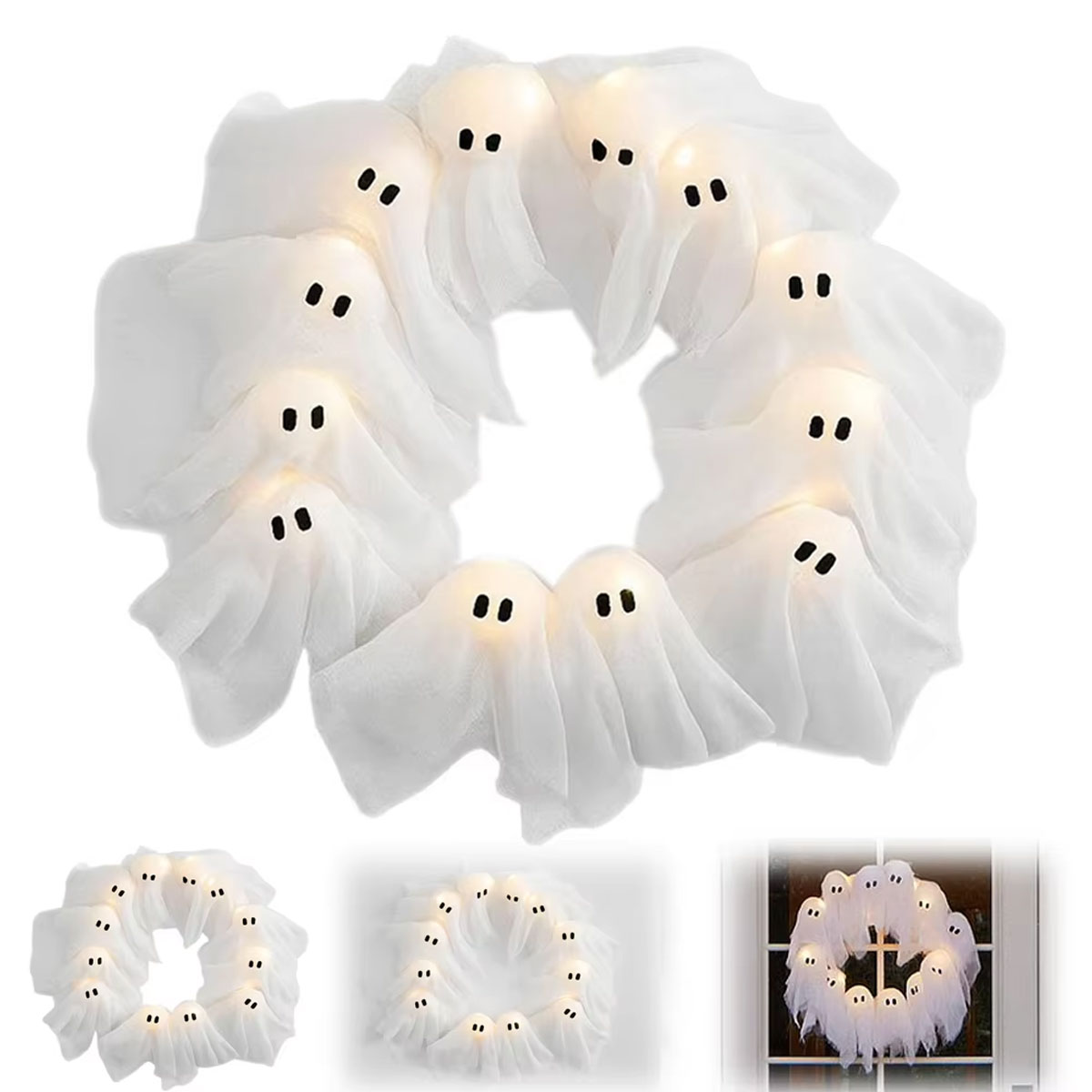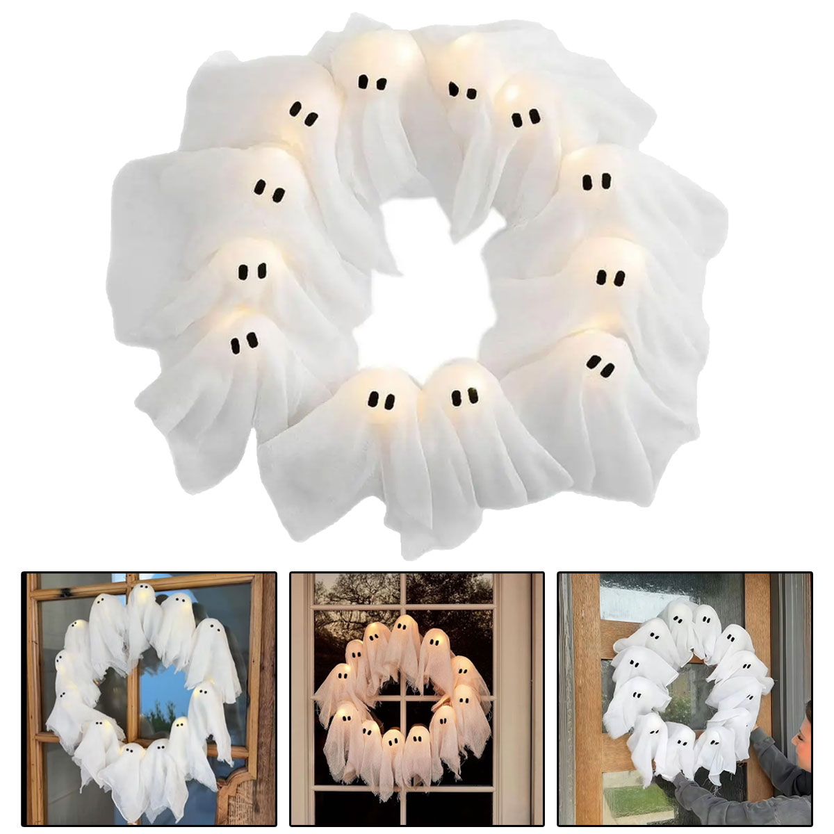 that bring a touch of charm and fun to your Halloween setup. Easy to hang and clean, this ghost wreath is not only a beautiful decoration but also a convenient and durable option for adding seasonal