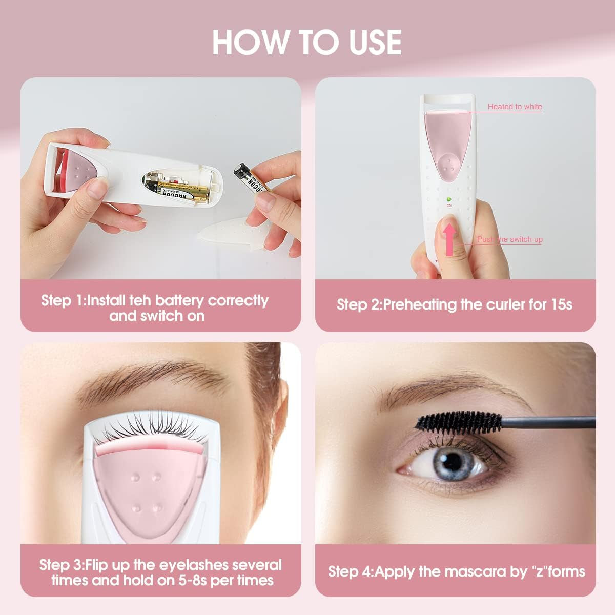 Heated Eyelash Curler Electric Eyelash Curler with Silicone Heating Pad,Long-Lasting Eyelash Makeup Tool for Women AG-2003AP (Pink)