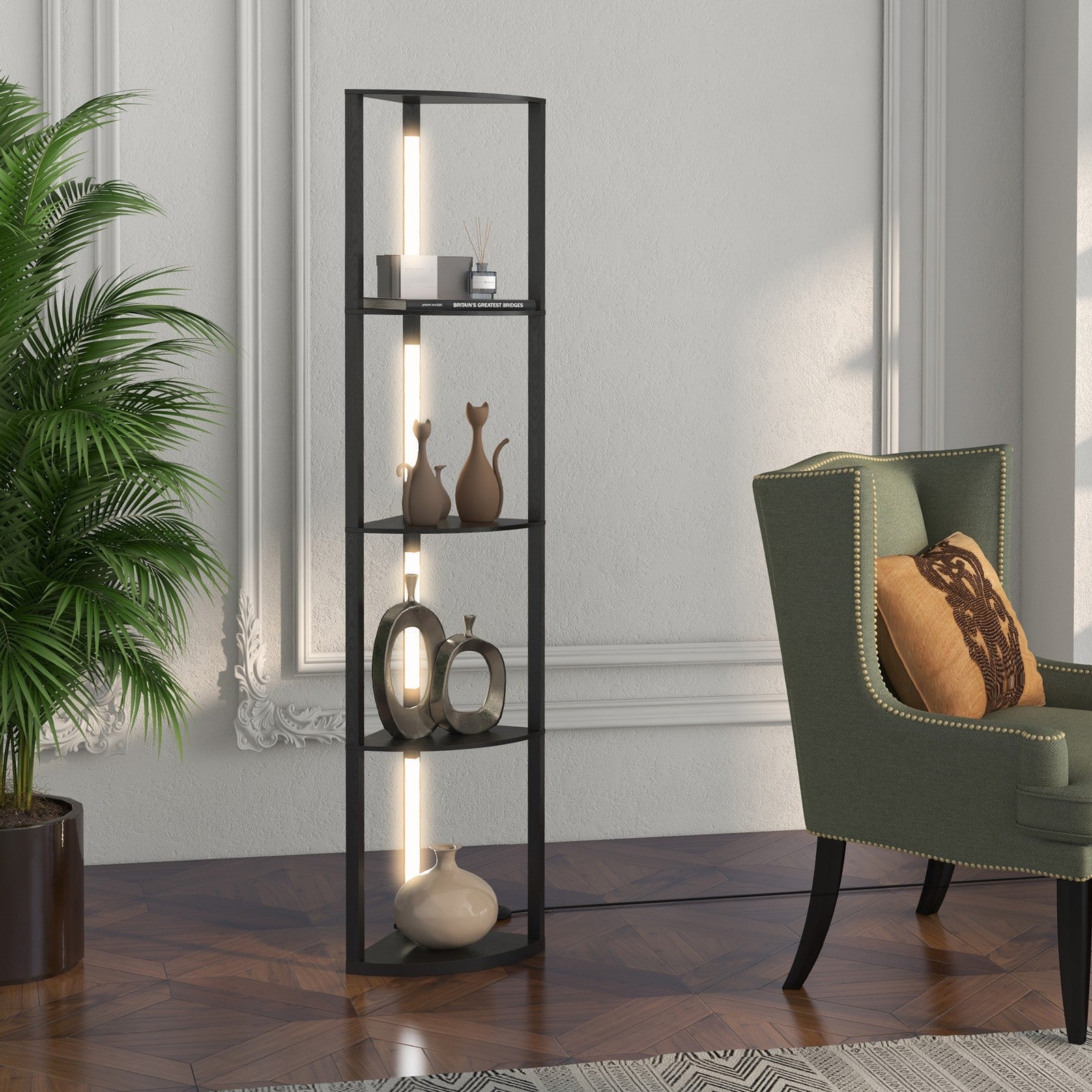 HOMCOM Corner Floor Lamp with Dimmable Warm White LED Light, Black