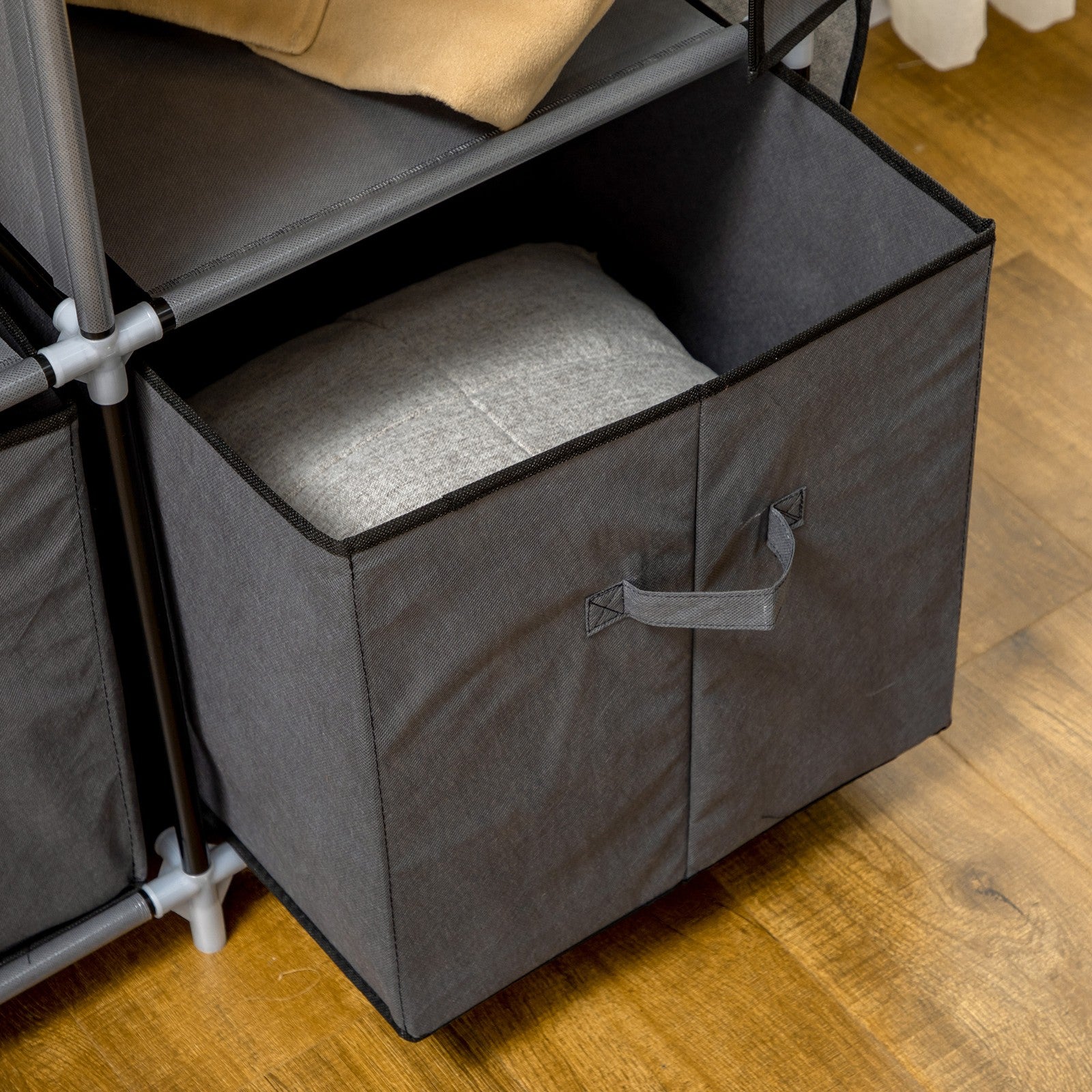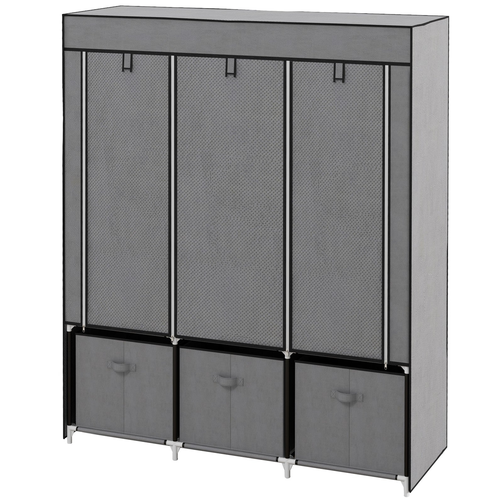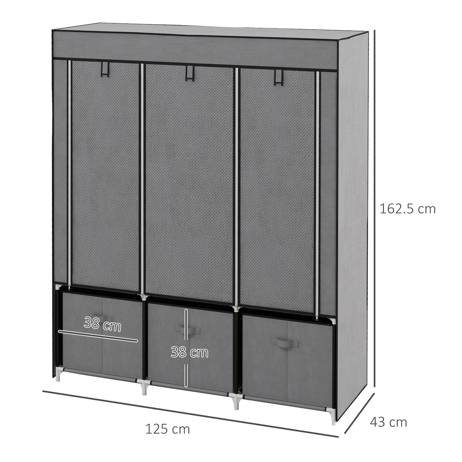 HOMCOM Portable Fabric Wardrobe with 5 Shelves and 3 Fabric Drawers, Grey