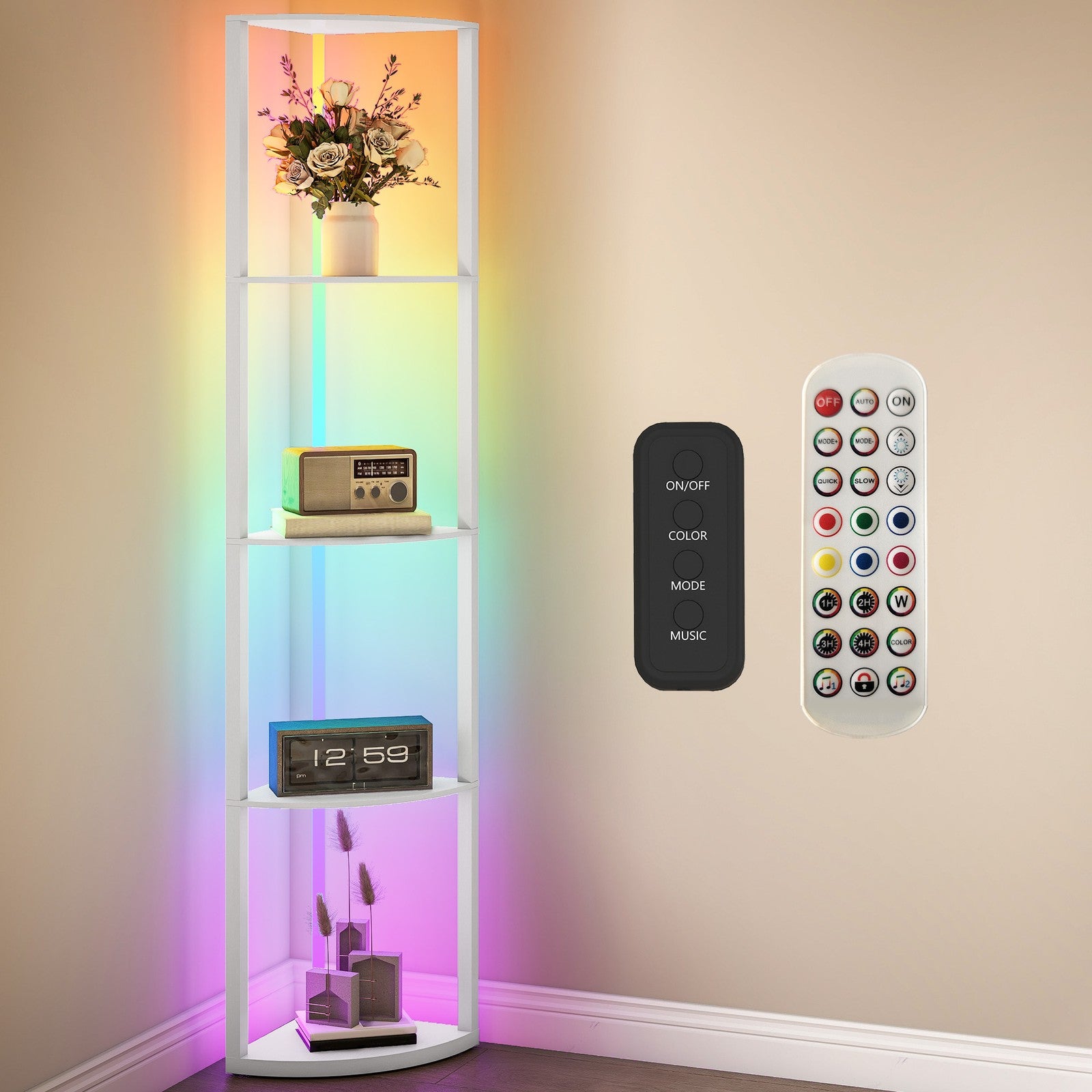 HOMCOM RGB LED Floor Lamp with Shelves and Remote Control for Living Room