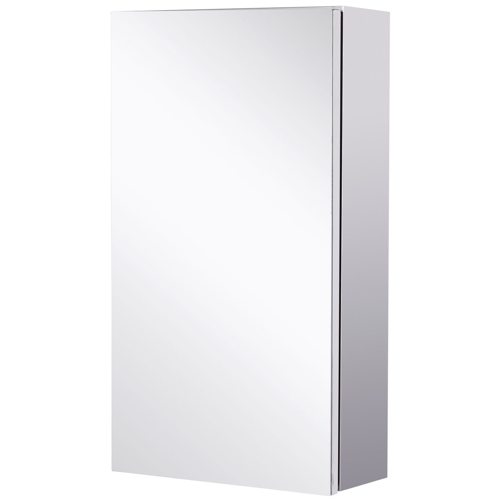 HOMCOM Wall Mounted Bathroom Mirror Glass Storage Cabinet Stainless Steel