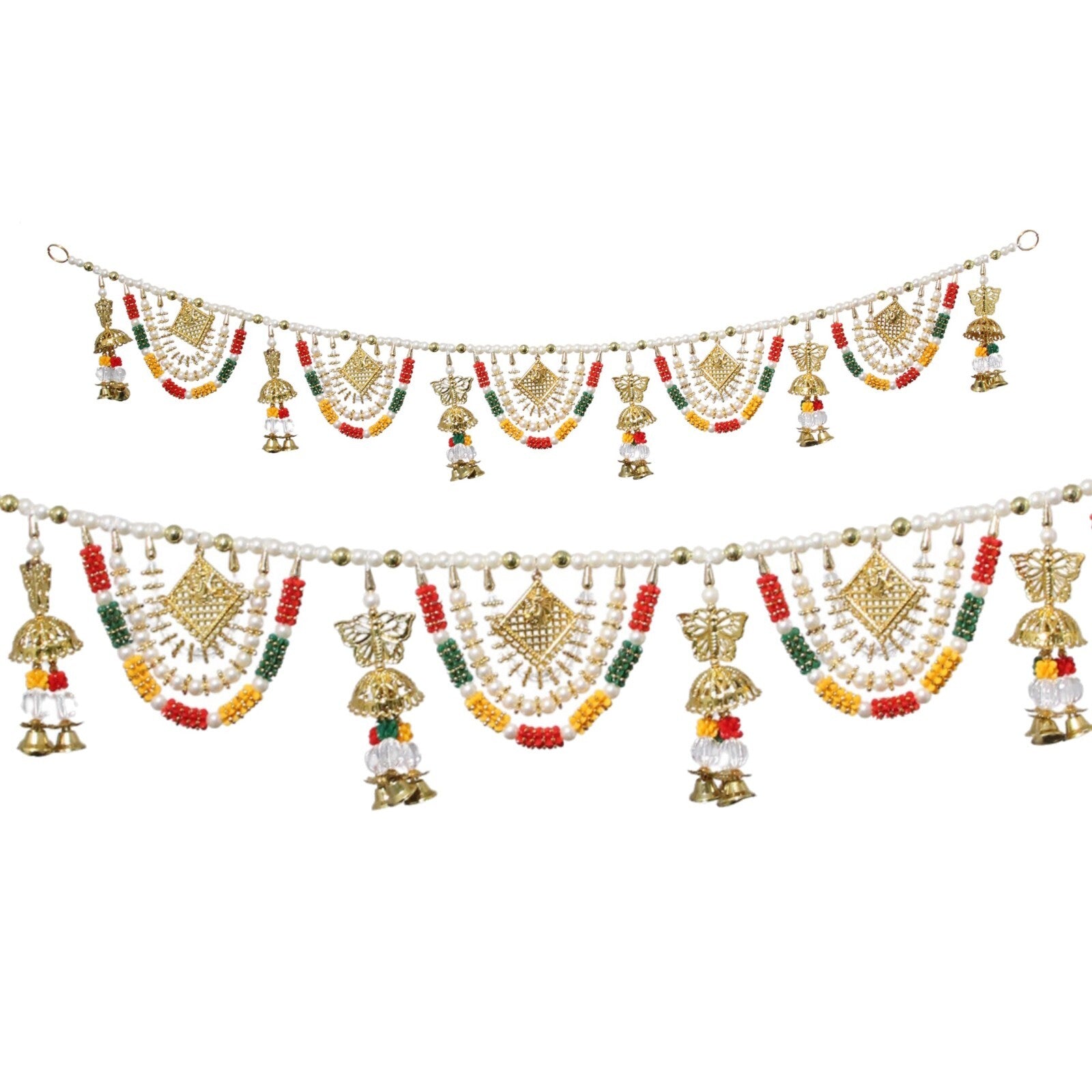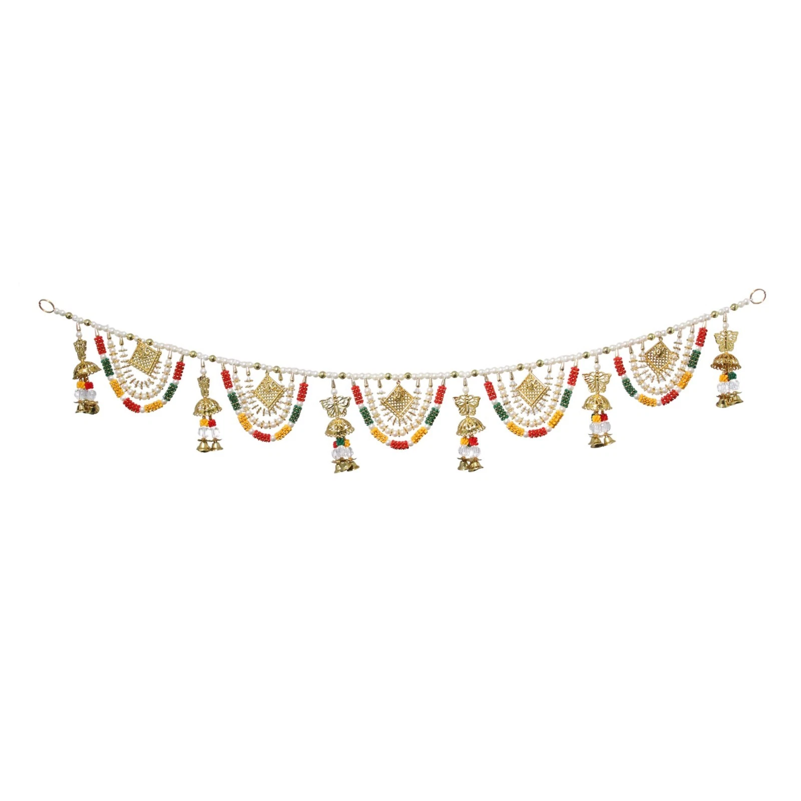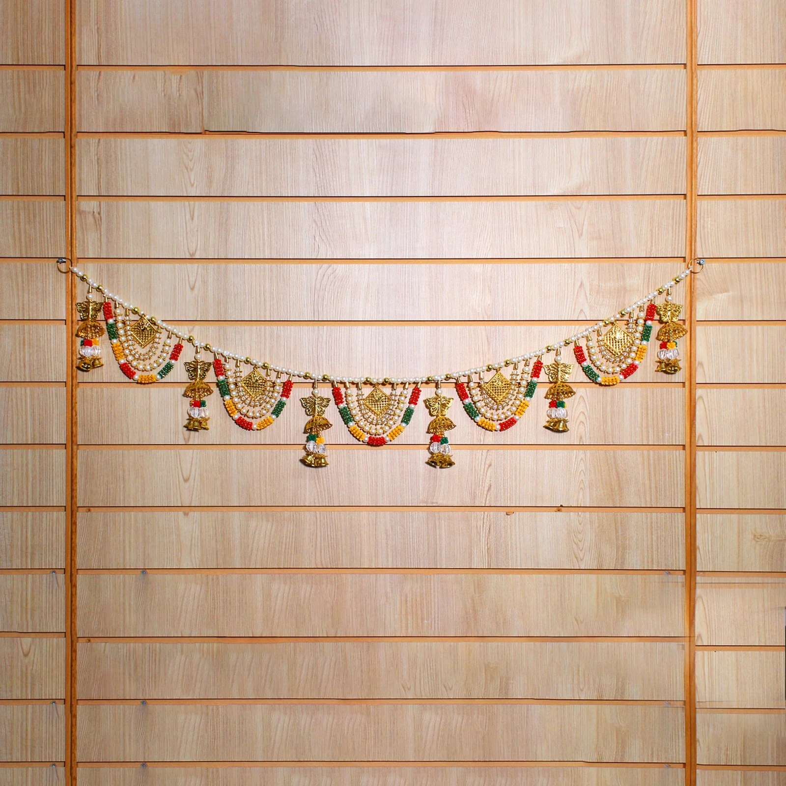HANDMADE TORAN - Crafted with a sturdy double thread, this handmade toran showcases intricate beadwork and hanging Ganesh motifs. Its detailed design and skilled craftsmanship make it a standout feature in any room, contributing a unique touch and enhancing your decor.