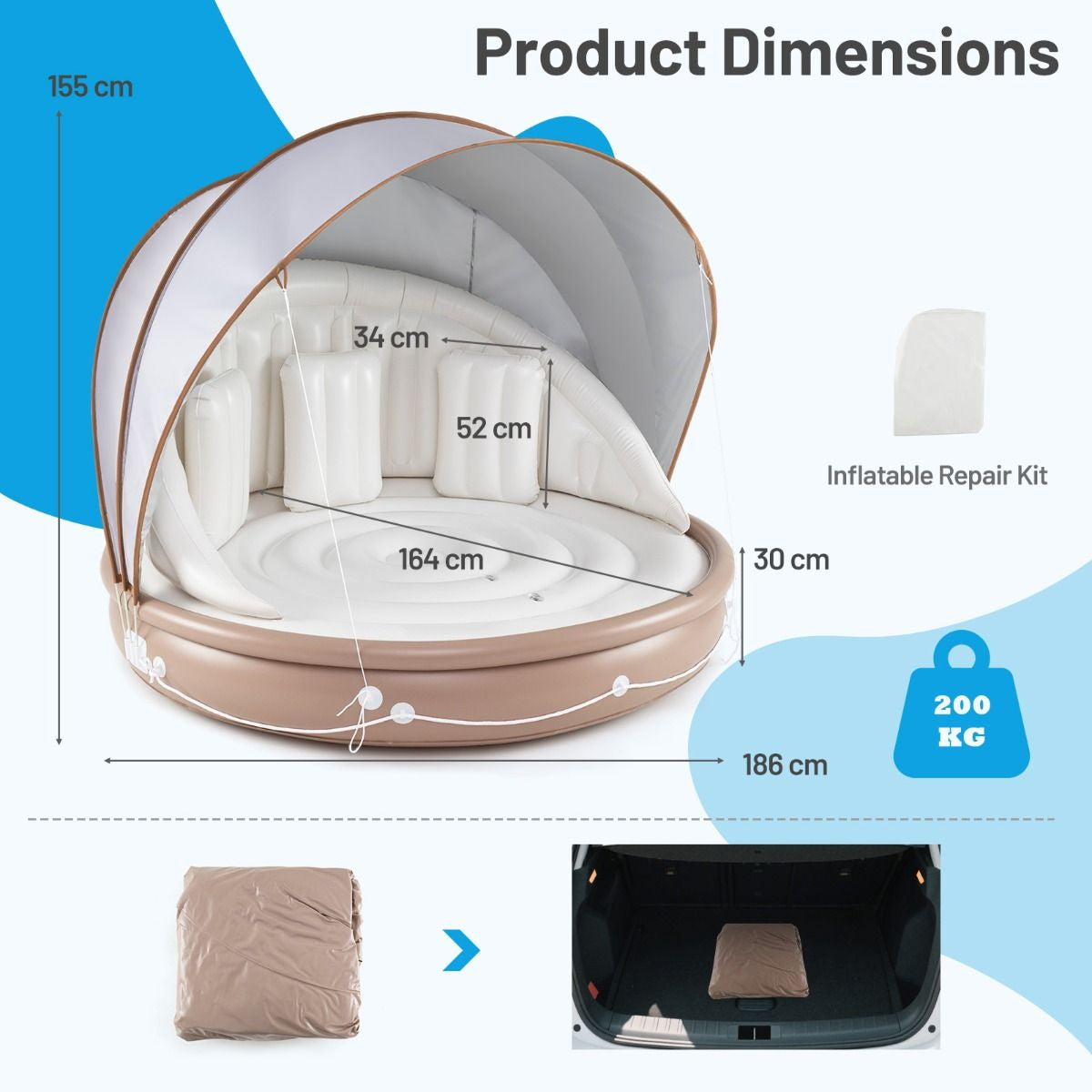 Adjustable Sunshade for Optimal Protection: This inflatable pool float comes with a detachable and adjustable sunshade canopy, keeping you shaded and comfortable outdoors. Moreover, it is crafted of premium polyester fabric with silver coating, offering excellent UPF50+ sun protection.