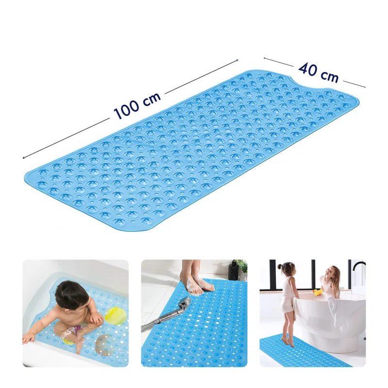 A top-quality bath shower mat is essential for reducing the risk of slips and falls in the bathroom. Add some style and comfort to your bathroom. Our bathtub shower mat includes particularly wide suction cups that assist in keeping them in place on smooth, clean surfaces. They are ideal for use in the shower and bath at home and in spas, saunas, gyms, and other facilities. Light blue, this non-slip PVC rubber shower rubber mat is infused with antibacterial characteristics to make your life easier and safer in the bathroom. Thanks to the textured surface that sits over the mat, you won't have to worry about slipping or falling in the tub. This surface also complements almost any kind of bathroom décor. With its trendy pattern, this shower mat is guaranteed to be on-trend.