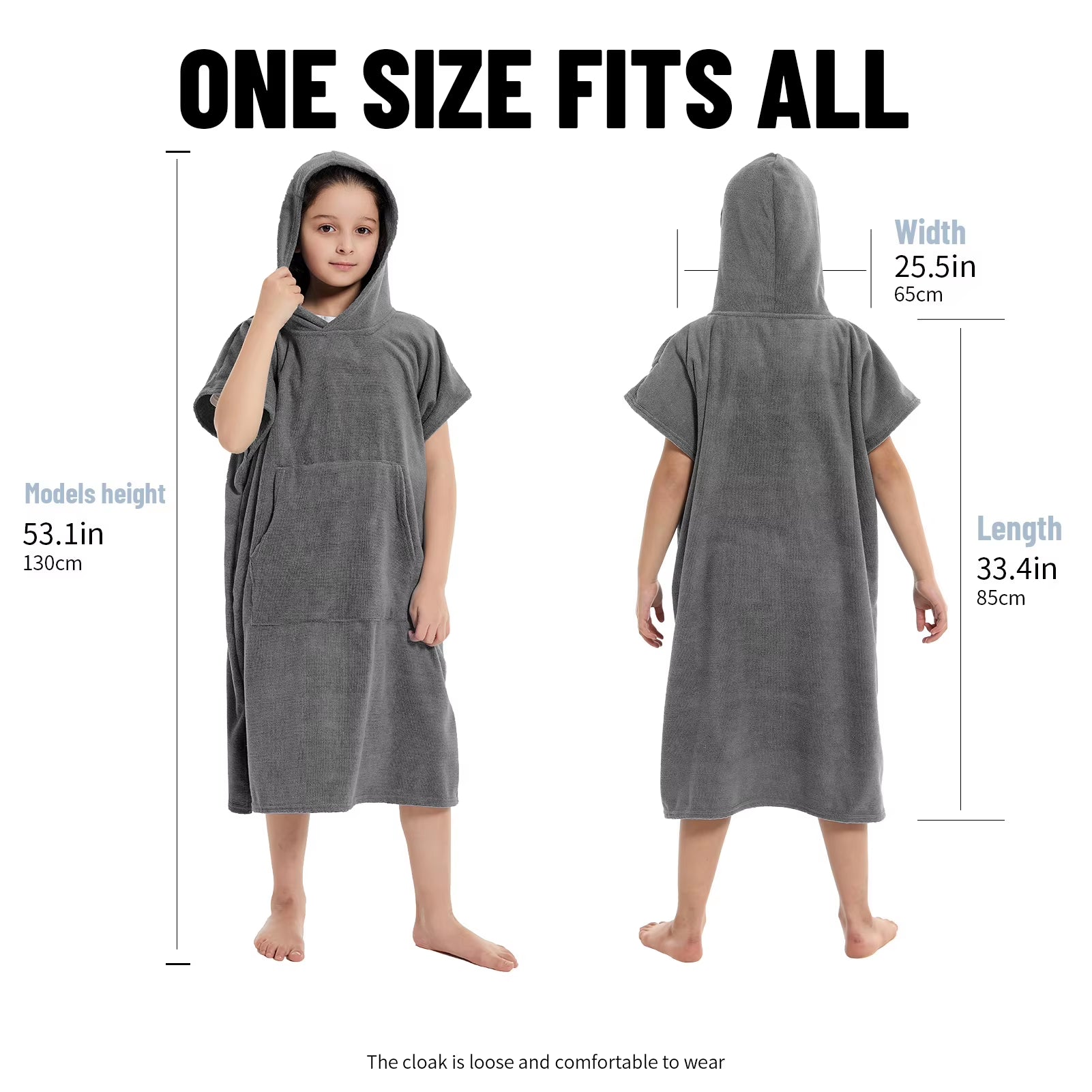 Kids Bath Hooded Changing Towel Robe, Swimming Robe Surf Beach Poncho, Quick Dry Absorbent Surf Poncho, Microfiber Towels