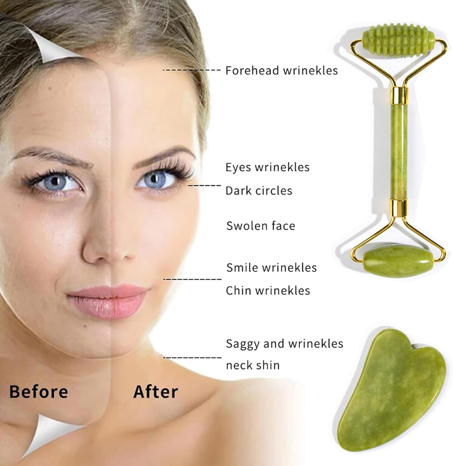 Lamkrtlp Jade Roller & Gua Sha, Face Roller, Facial Beauty Roller Skin Care Tool
