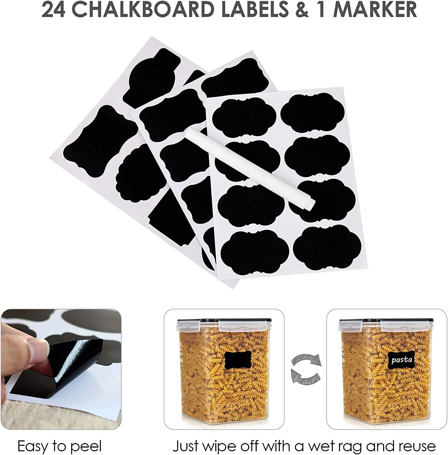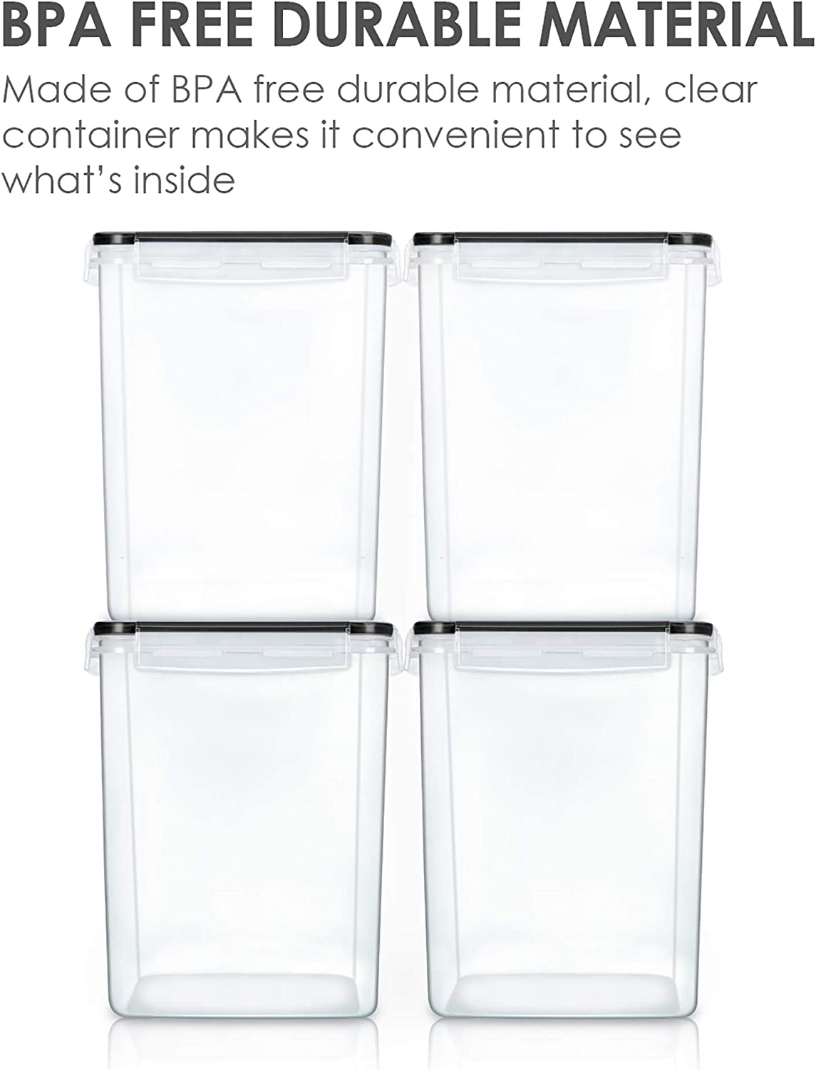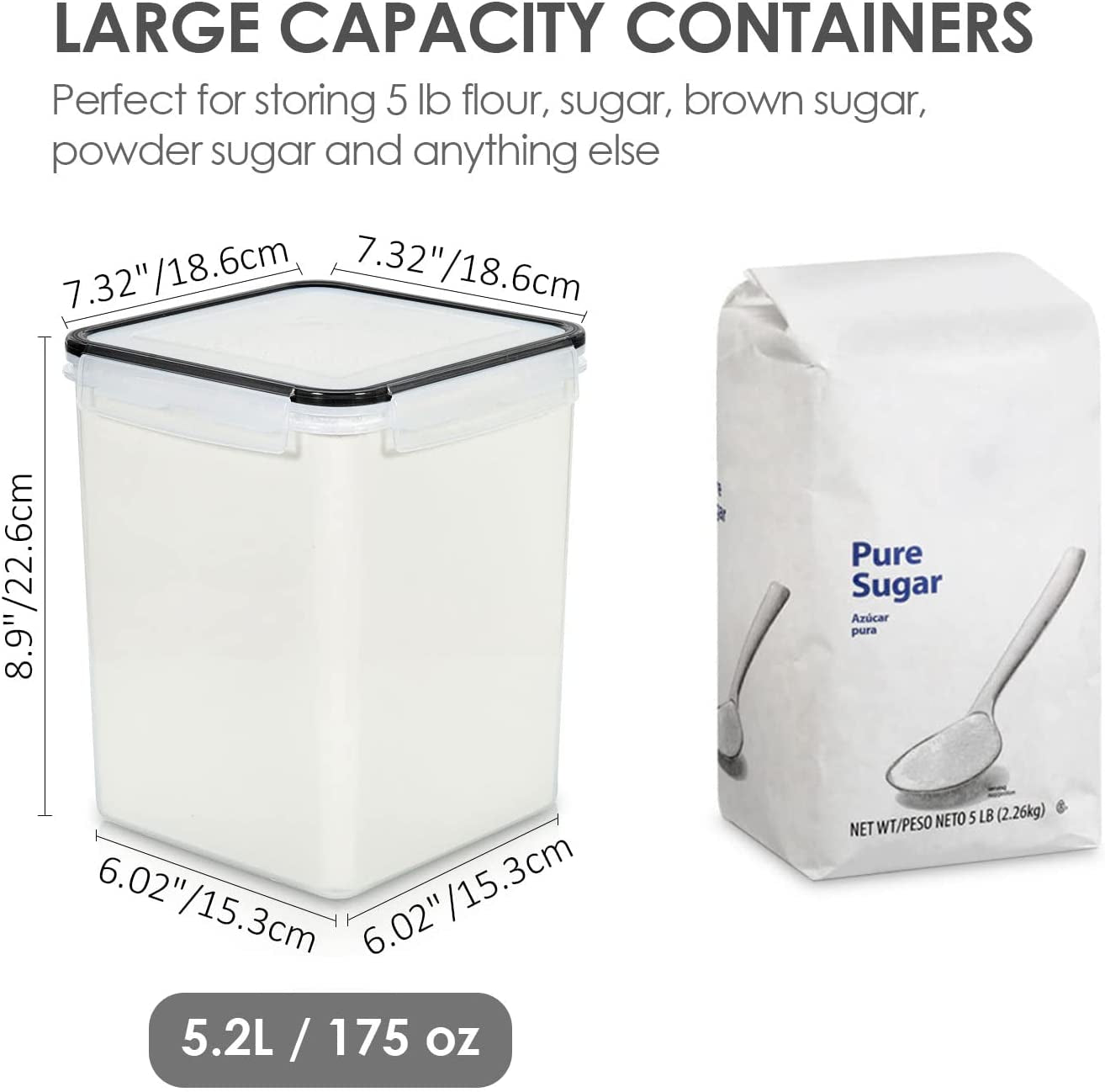 Large Food Storage Containers 5.2L / 175Oz, 4 Pack Plastic Airtight Storage Containers with Lids for Flour, Sugar, Rice, 4 Measuring Cups and 24 Labels, BPA Free, Black