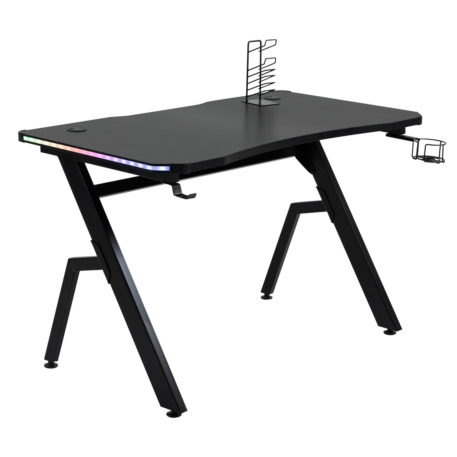 LED Ergonomic Gaming Desk Computer Table with Cup Holder Cable Management, Black