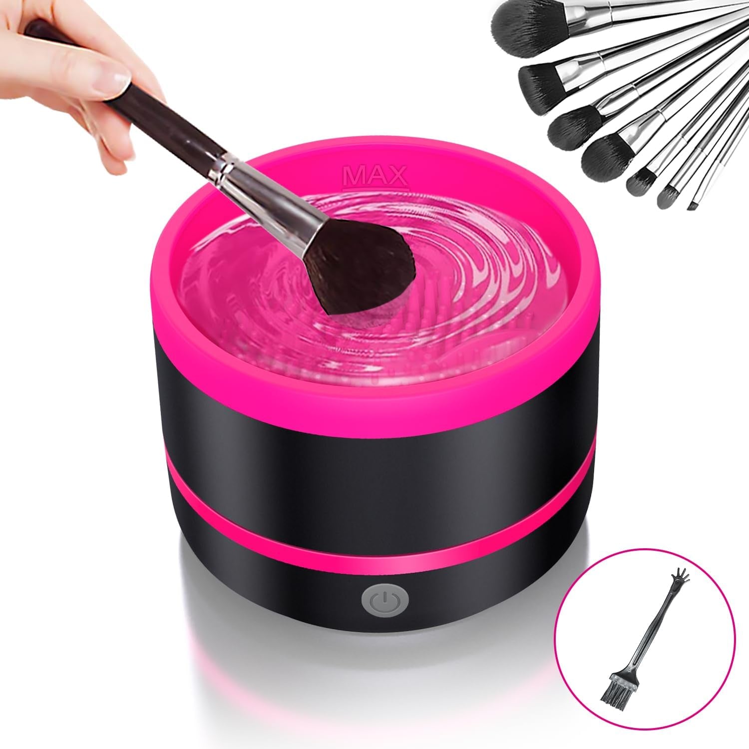 Make up Brush Cleaner, Electric Makeup Brushes Cleaner Machine, Automatic Spinner Cosmetic Brush Cleaner, Make up Brushes Cleaning Tool Quick Cleaning for Types of Makeup Brushes (Rose Red)