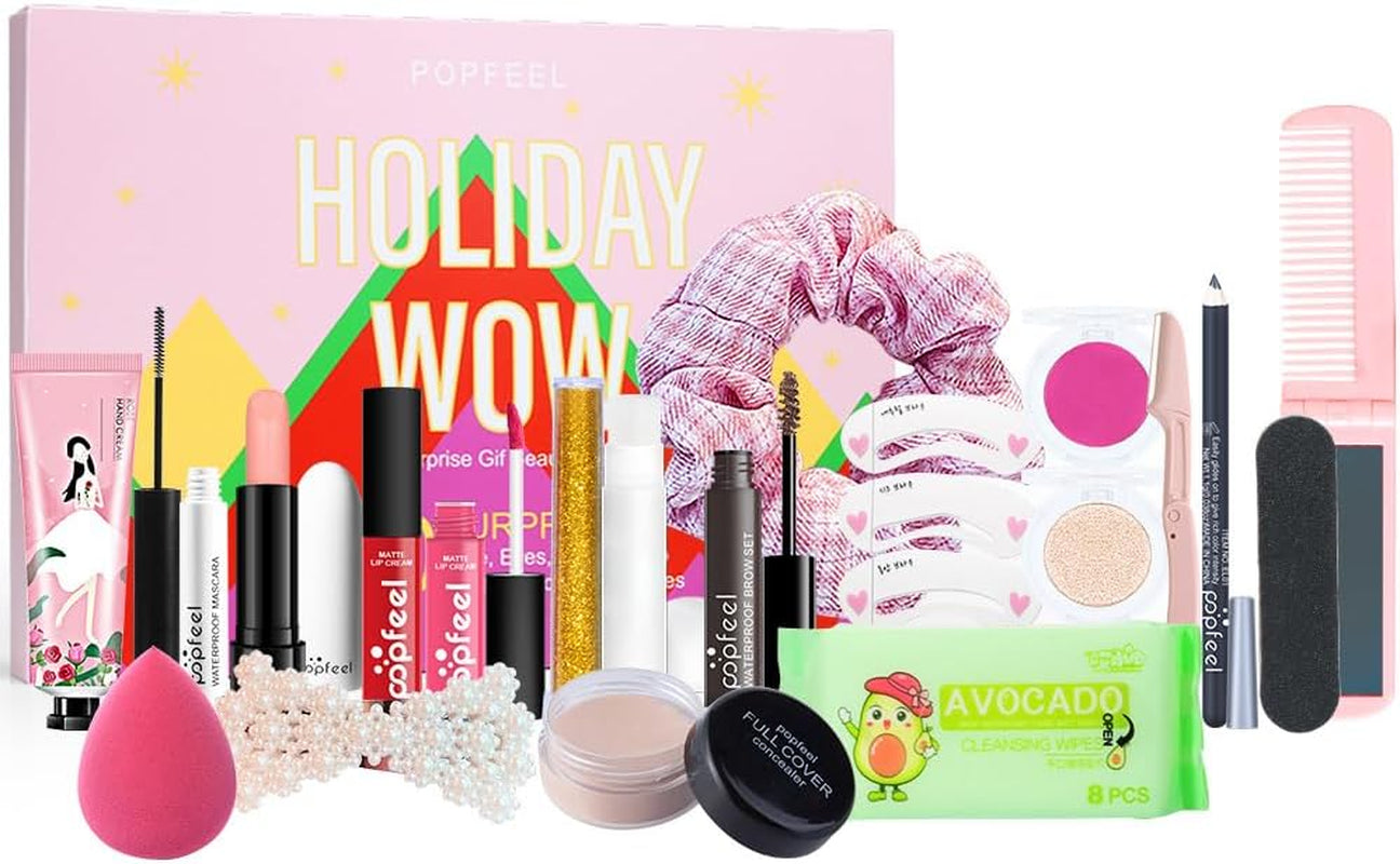 20Pcs Advent Calendar For Girls This Advent Calendar Is Designed For Girl And It Comes With Everything She Needs, Includes Eyebrow Cream, Lip Balm, Lipstick, 2Pcs Lip Gloss, Eyeshadow, Blush, Hair Tie, Eyebrow Card, Mascara, Makeup Remover Pads, Hair Clip, Concealer, Hair Comb, Makeup Sponge, Eyeliner, Colorful Eye Pigment And So On Unique Design For Girls The Independent Small Boxes Design, Make Sure Your Kids Have Unforgettable Surprise.So They Can Harvest Different Joyful Girls Favorite No Girls Can Say No To The Cute And Beautiful Makeup Set You Can Imagine How Crazy The Girls Were When They Got These On Their First Day. One Thing Is For Sure, They Will Makeup Their Face Right Now Real Makeup Kit For Girls When You Are A Teenage Girl, Do You Ever Dream Of Owning A Makeup Set Our Perfect Makeup Kit Is Designed For Princesses With Vibrant Shades And Top Notch Textures, Which Includes Soft Brushes In Glitter Eyeshadow, Shimmer Lip Gloss And Lipstick. Theres Nothing Better Than Getting Together With Your Best Friend And Turning Into A Princess For A Christmas Party Or Cosplay Makeup. Perfect Birthday Gift Box For Girls A Fun And Cute Diy Creative Christmas Advent Calendar Kit. Perfect Christmas Gift For Girls, Kids, Teens And Adults. Great For Christmas, Christmas Eve, Birthday, Thanksgiving, Wedding, Valentines Day, Engagement, Anniversaries, Holidays And More.