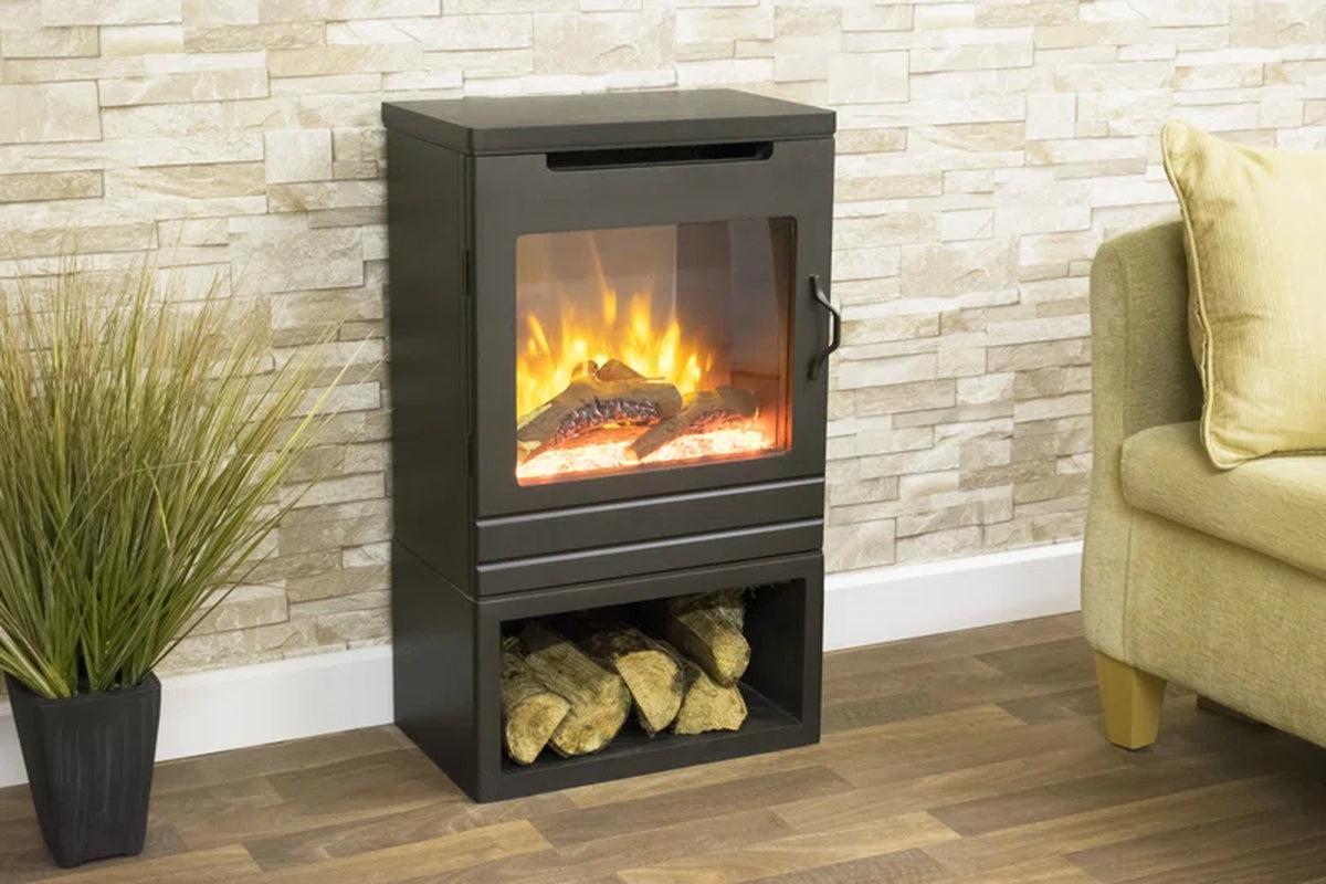 Fitted complete with a log store, this fire is a contemporary-style stove with a large square viewing window. Read more