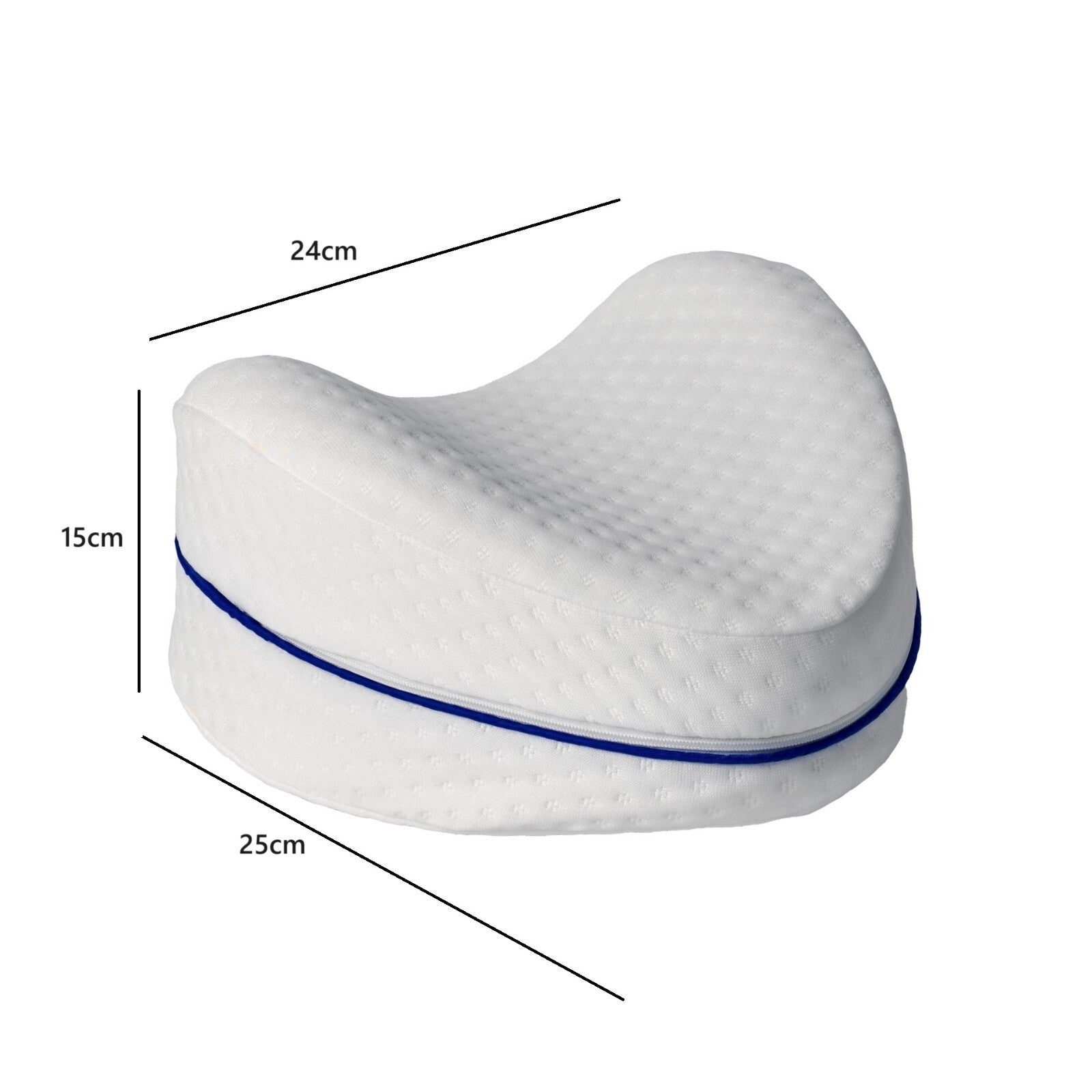 Experience comfort and support with our orthopedic Leg & Knee Pillow, meticulously designed to contour to the shape of your lower extremities for optimal relaxation. Filled with premium memory foam, this wedge-shaped pillow is ideal for alleviating pressure points and promoting better sleep posture, especially for those with knee or back concerns.This small-sized, white pillow measures 25cm in length and 24cm in width, making it a perfect fit for any bedroom setting. Its ergonomic features ensure a snug fit, while the machine-washable cover provides ease of maintenance. Embrace the fusion of practicality and comfort with this essential bedroom accessory.