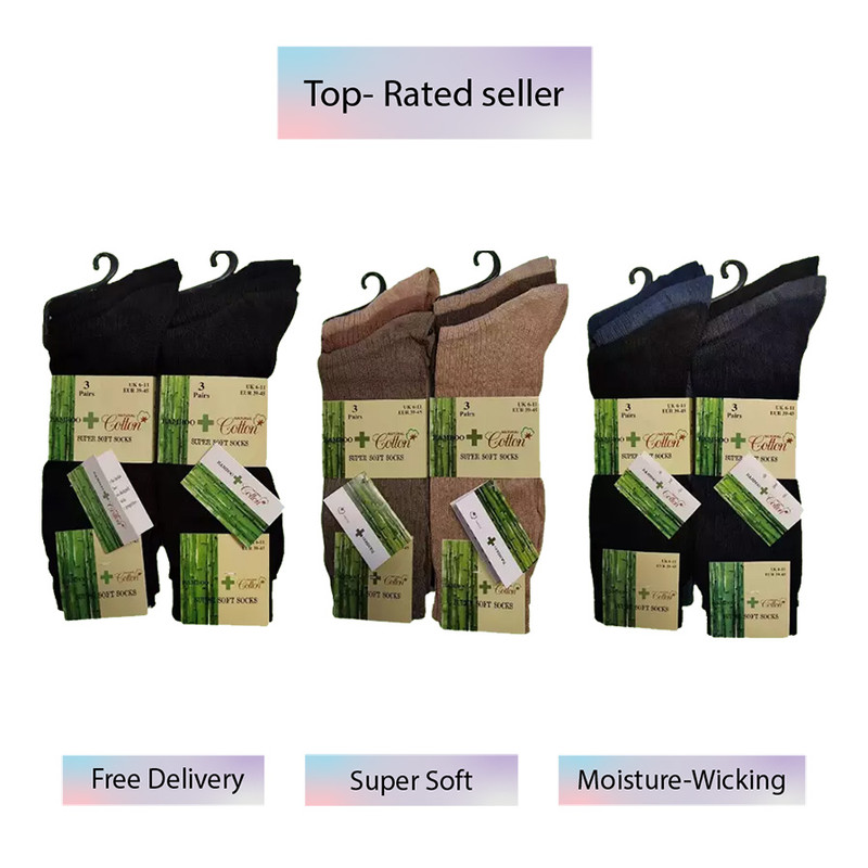 Mens Bamboo and Natural Cotton Super Soft Ribbed Breathable Socks 6-11