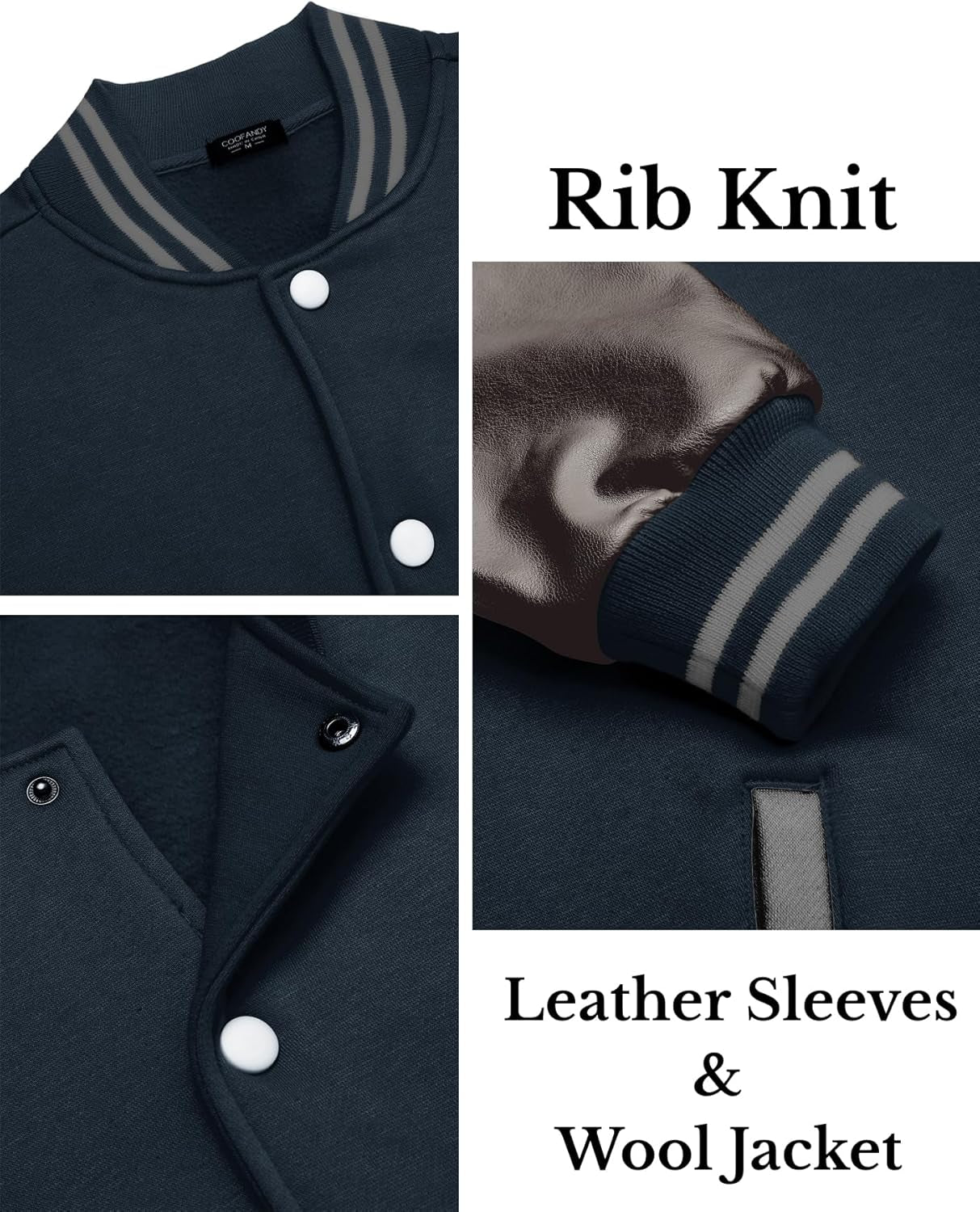 COOFANDY Mens Varsity Baseball Letterman Jacket Leather Sleeves Wool Bomber Jackets Vintage Streetwear High School Coats