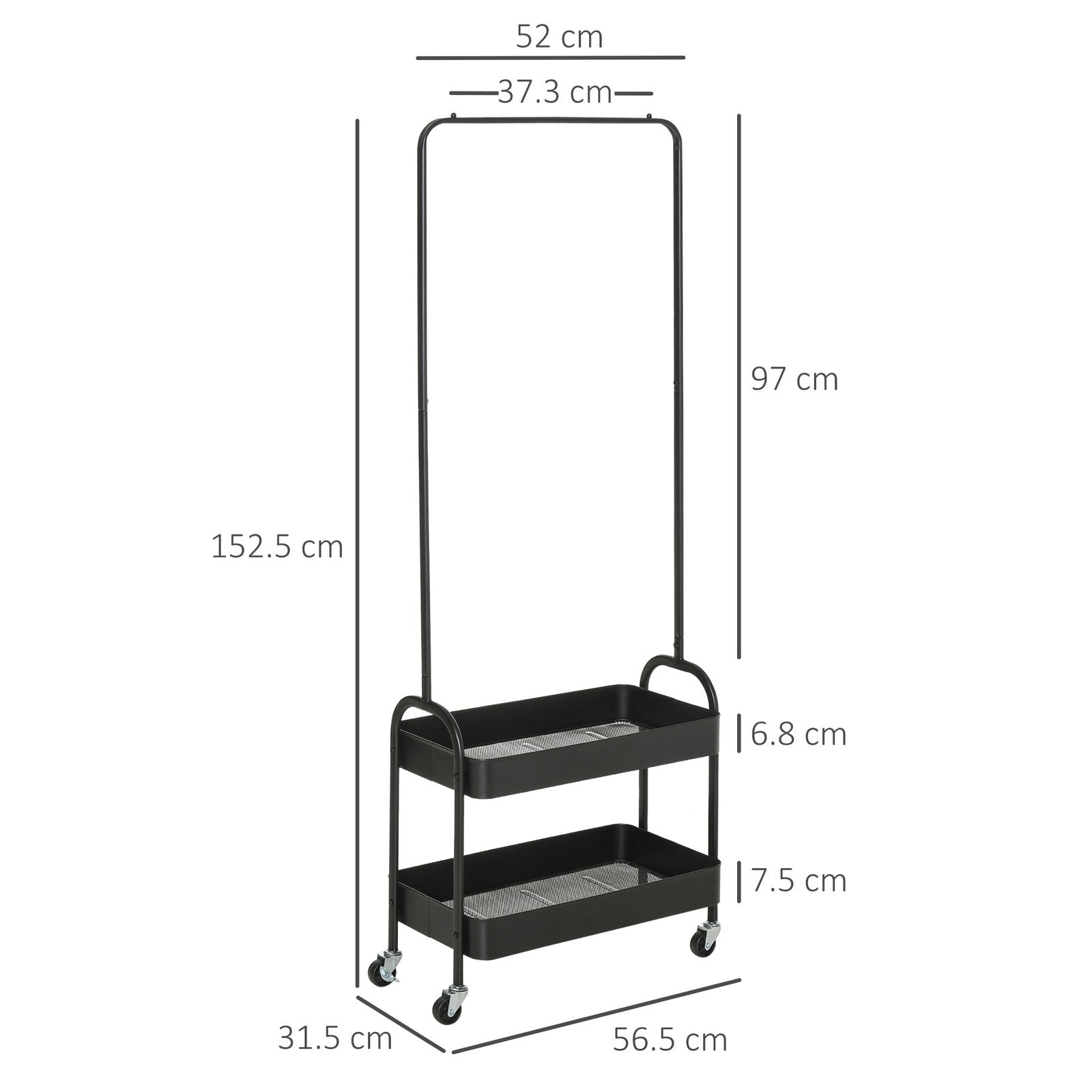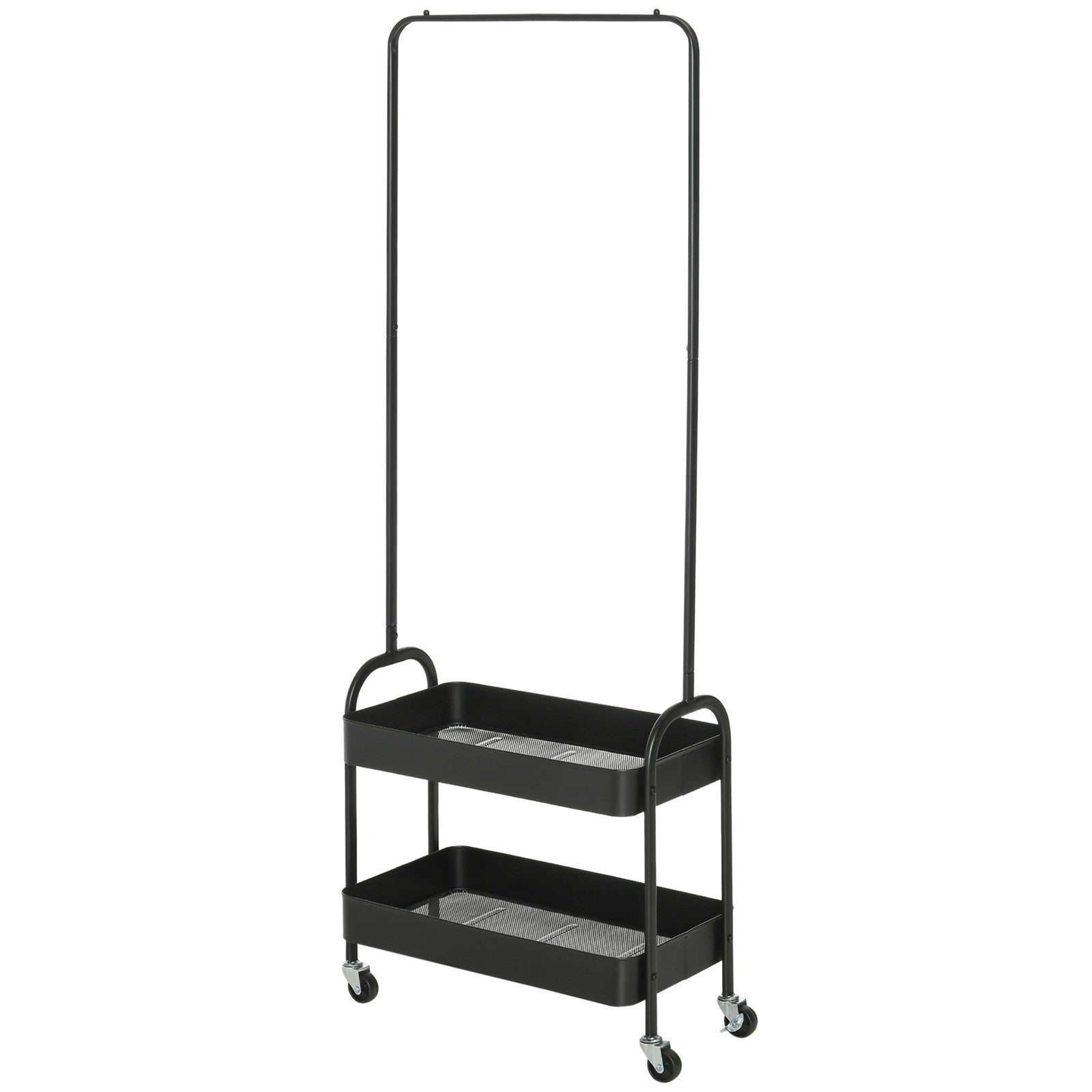 Metal Coat Rack with Shoe Storge, Clothes Hanging Stand with 2 Shelves, Black