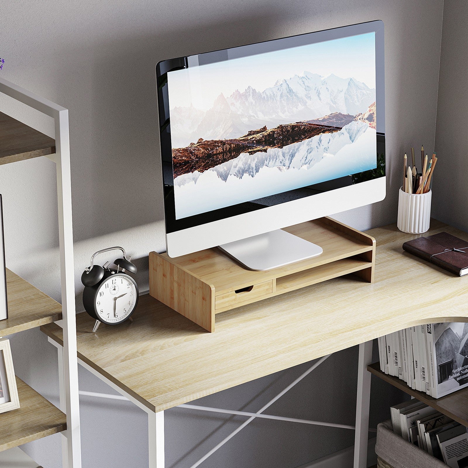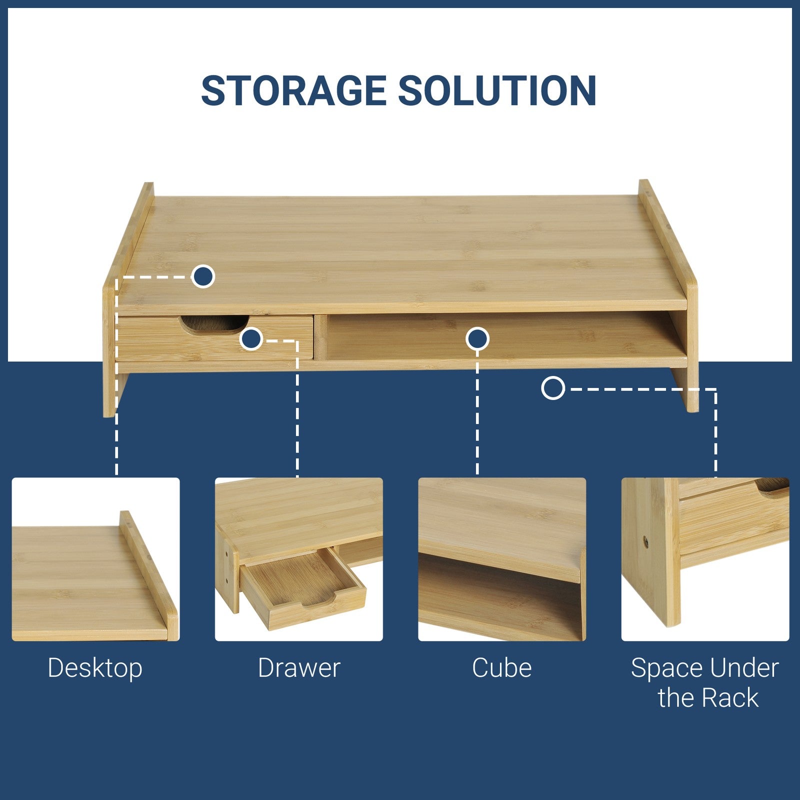 Monitor Riser Laptop PC Plinth Stand Organiser Computer Screen W/ Drawer Bamboo