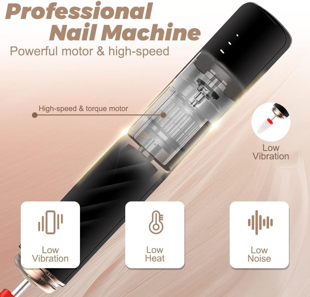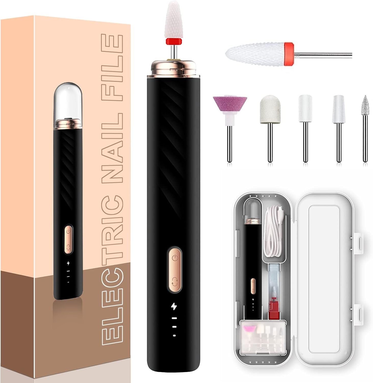 Nail Drill Electric Nail Files Professional Rechargeable Electric Nail Drill Machine with Ceramic Nail Bit for Beginners, Nail Drill Machine Set for Polish Nails, Manicure and Pedicure Tools (Black)