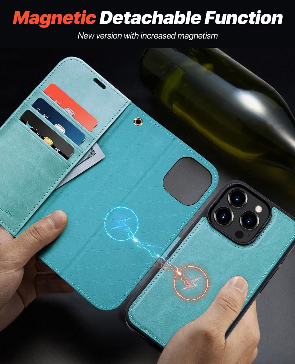 • Upgraded Magnetic Phone Case: This 2-in-1 iPhone 15 Pro wallet case is both a magnetic phone case and a detachable flip wallet. The magnetic single phone case can be used alone as a basic case. It is equipped with upgraded strong built-in magnets, so it not only supports MagSafe and Wireless Charger but is also compatible with a colorful family of accessories for easy attachment to cars, refrigerators, filing cabinets, and other metal surfaces.