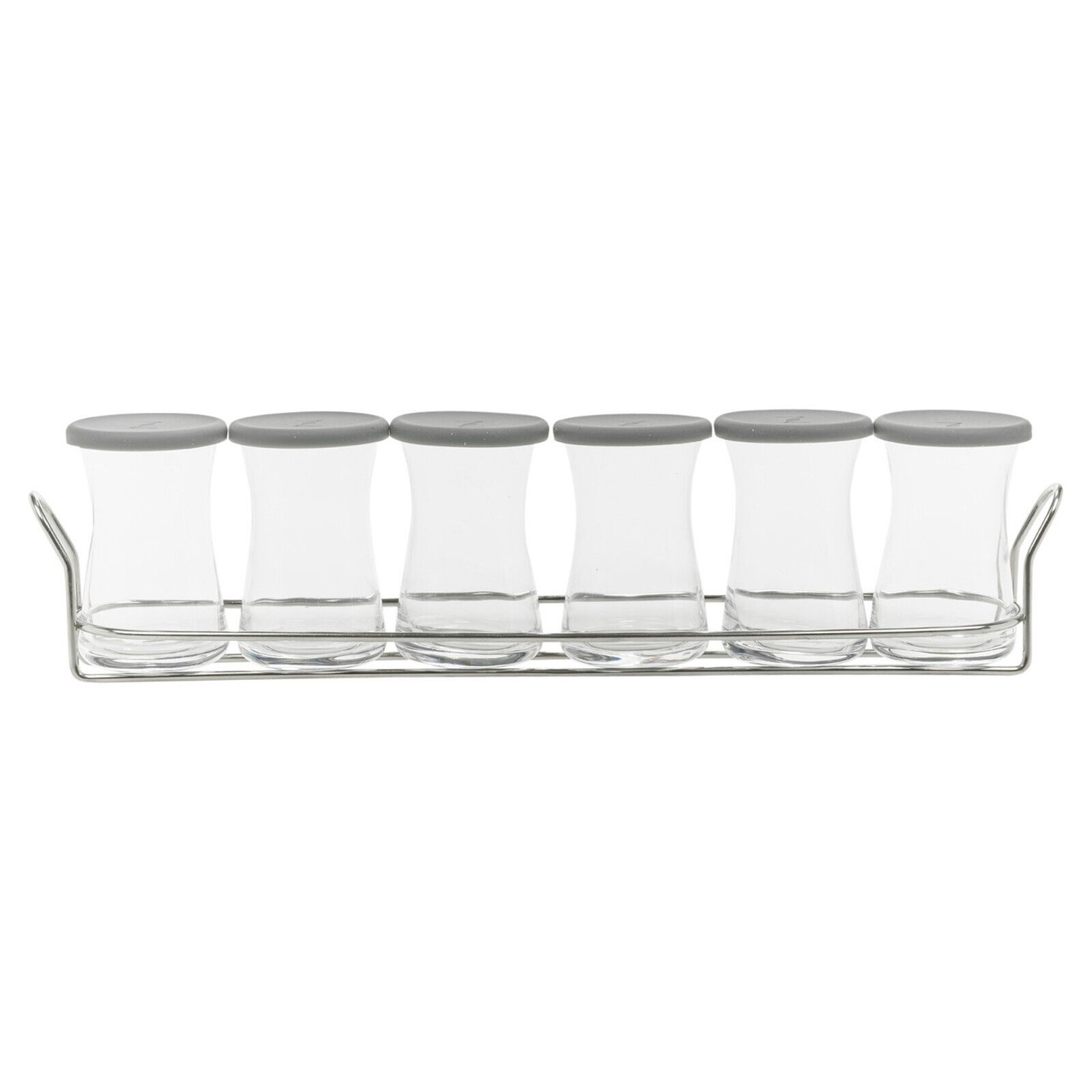 Practical Glass Storage Jar Keep spices tidy & organized 6 Jars & 1 Rack Capacity:160ml Dimensions: H9.5cm D6.5cm All UK postage prices are for UK Mainland Only.
