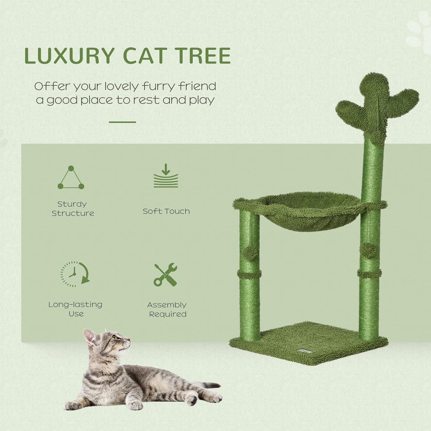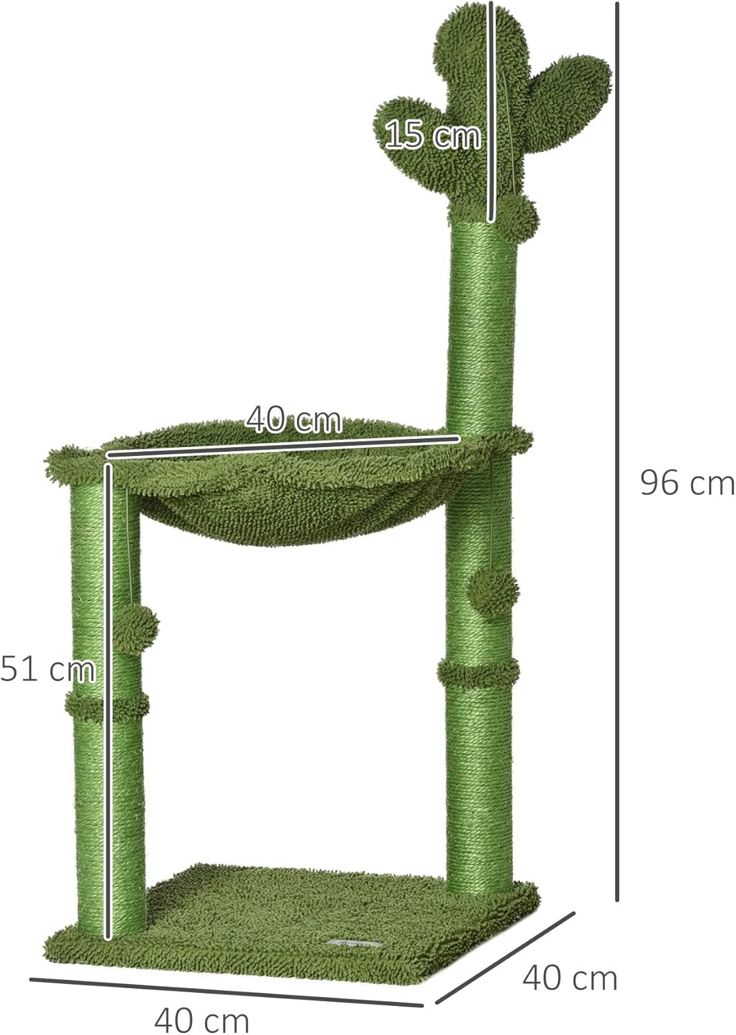NEW Pawhut Cactus Cat Tree Tower for Indoor Cats Sisal Scratching Post with Hammock Bed Dangling Ball 40 X 40 X 96 Cm