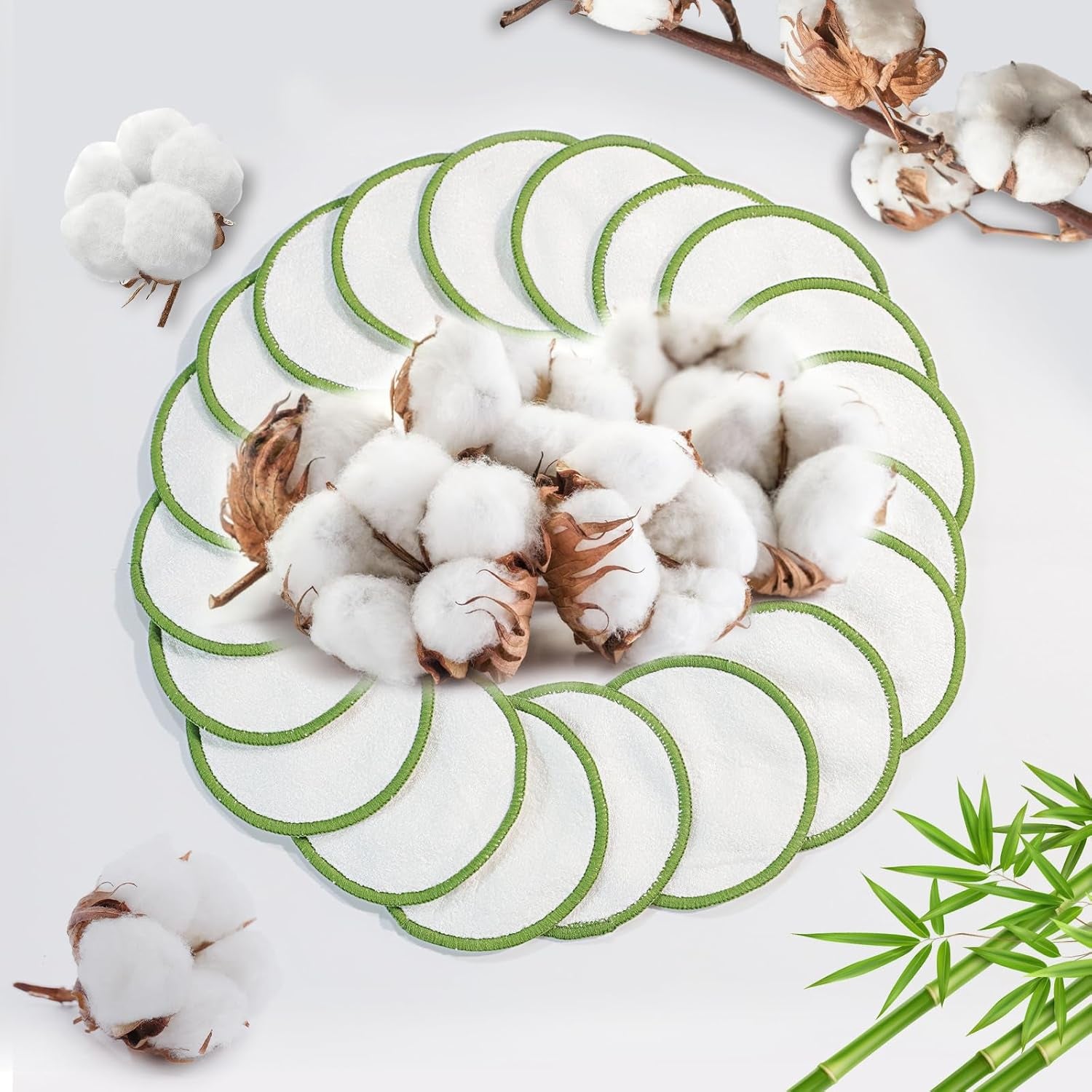 Reusable Makeup Remover Pads, 20Pcs Reusable Cotton Pads with 10 Facial Sponges Cleansing, Natural Bamboo Cotton Rounds 2-Layers Washable Face Cotton Pads with Laundry Bag