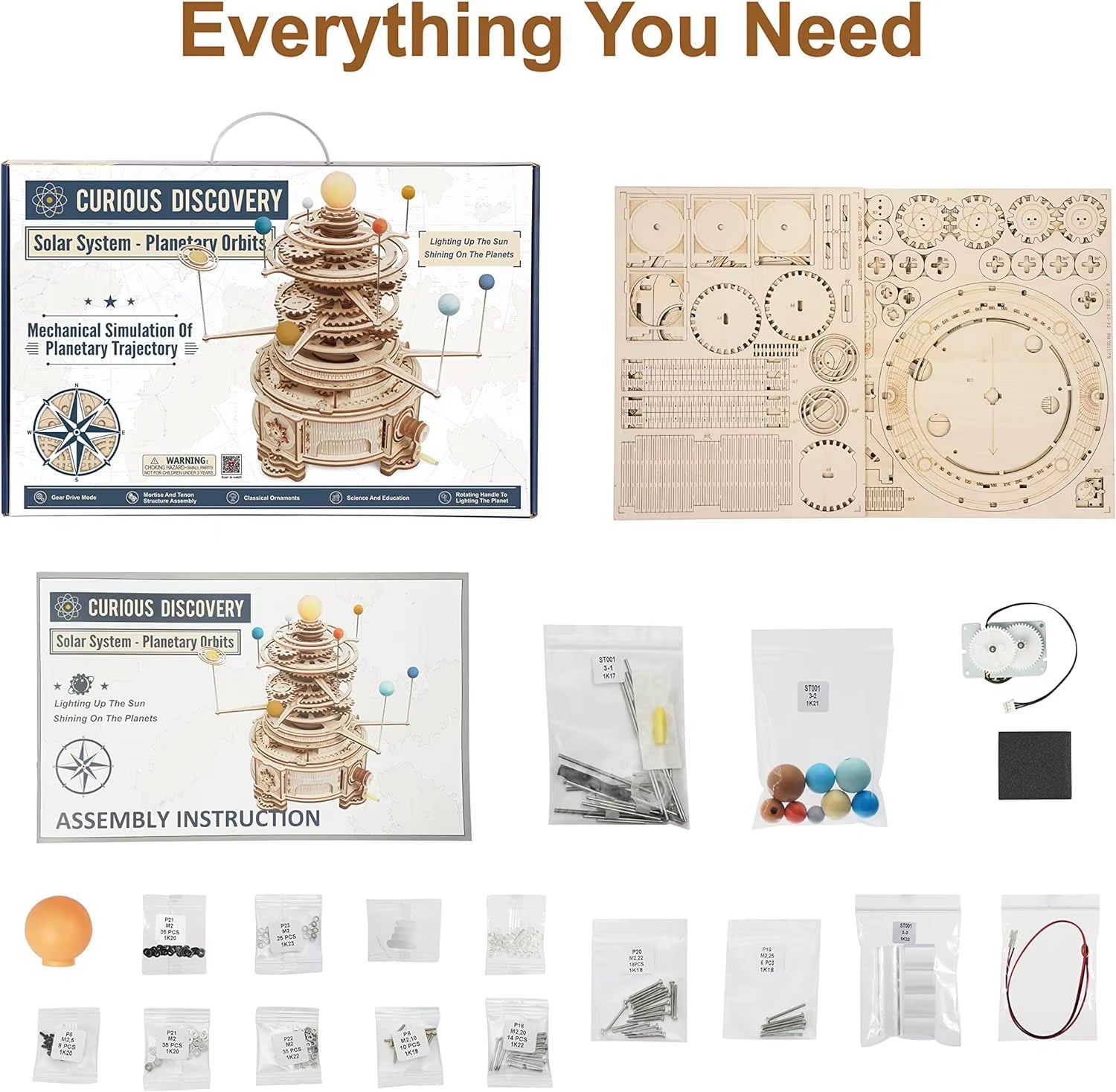 🔧【Easy Assembly】: Connect the pieces effortlessly using the mortise structure, crafted with laser precision cutting and recyclable safety materials. With illustrated instructions in English, assembly is a breeze. Patience is key as you sand the gears with sandpaper and wax, ensuring a smoother spin for this captivating solar system model kit.