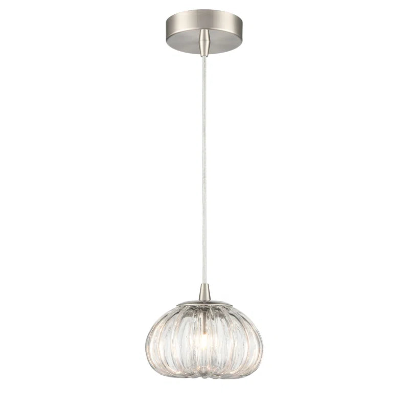 Satin Nickel Single Pendant with Clear Ribbed Enclosed Glass with Inverted Base