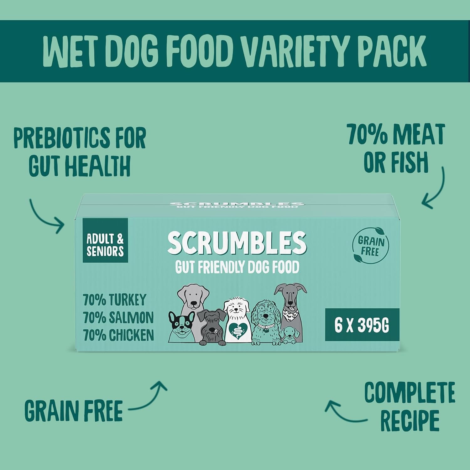 NEW Scrumbles Natural Wet Dog Food Multipack, 6X 395G Variety Pack