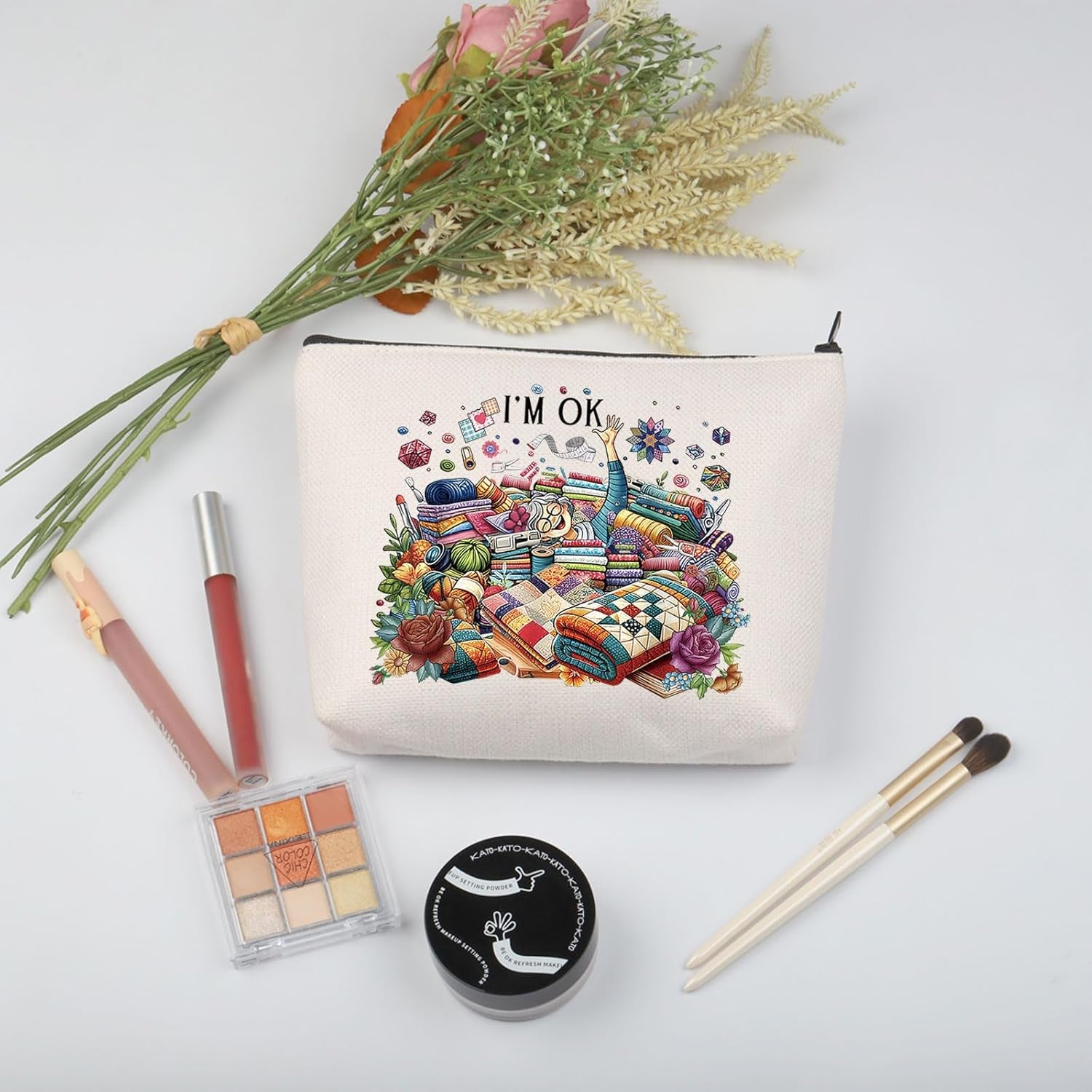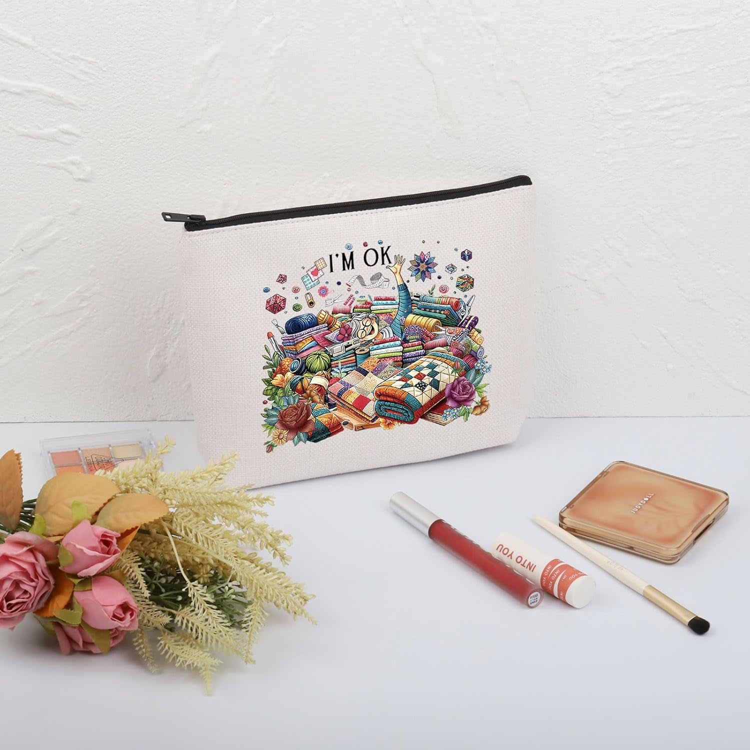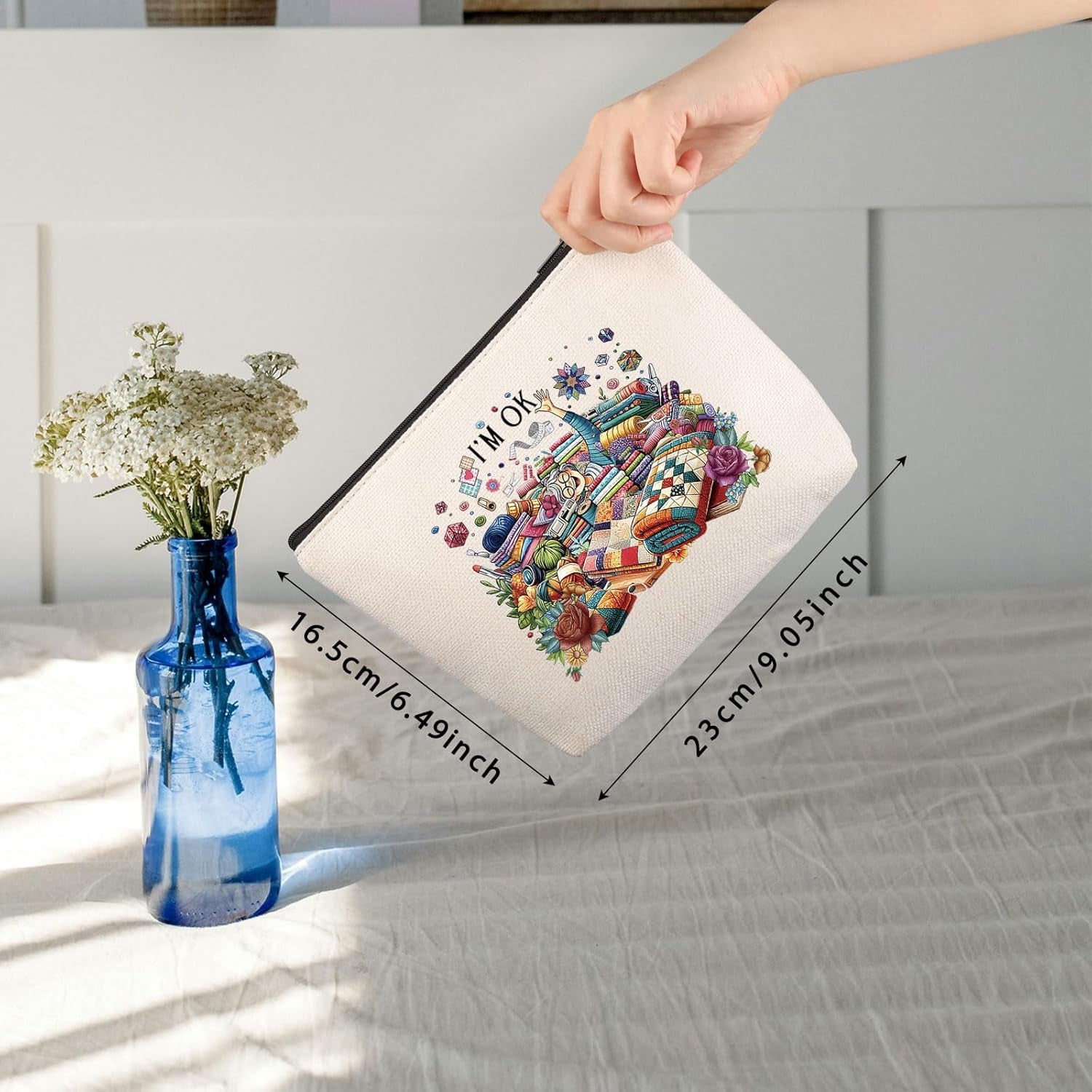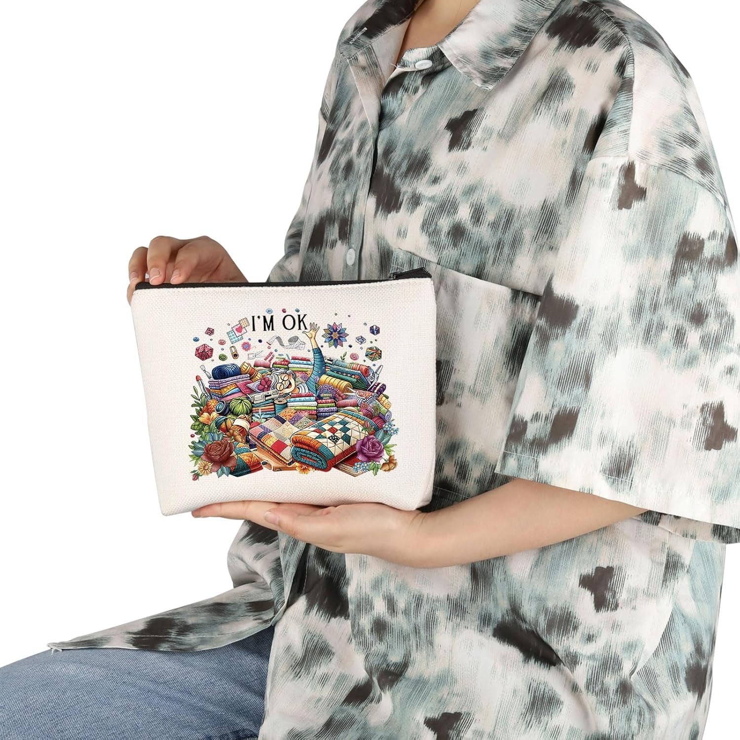 Sewing Makeup Bag Quilting Themed Gift Tailors Sewing Lovers Gift Quilters Sewing Gift (I’M OK Sewing Bag EU)