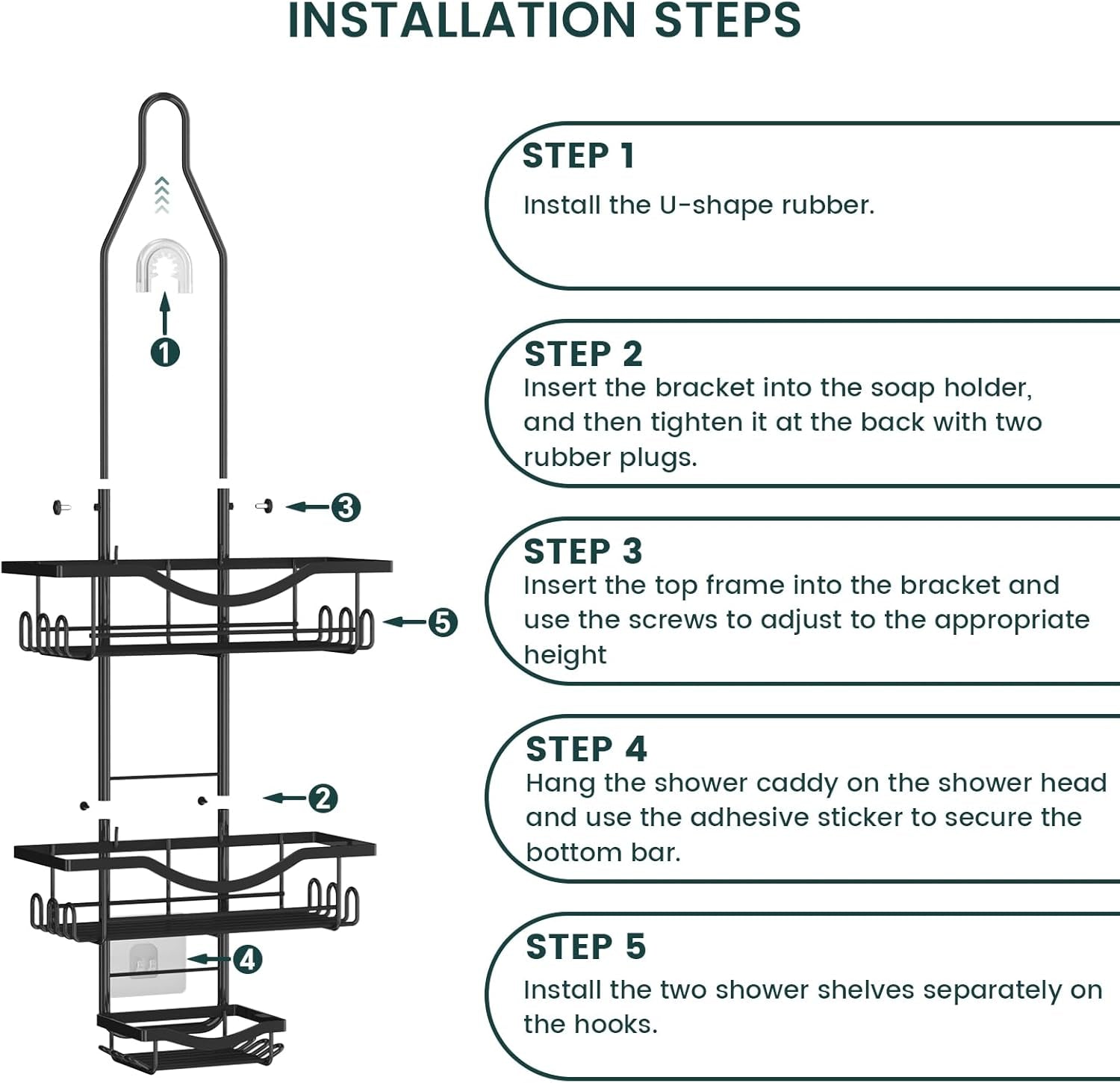 【ATTENTION】Please ensure that the screws on both sides of the shower caddy for adjusting the height are sufficiently tightened during... Read more