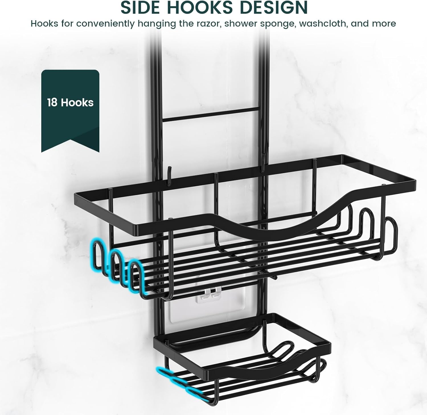 Shower Caddy Hanging Adjustable Shower Caddy, Rustproof Shower Organizer Extended Length Shower Caddy over Shower Head with Hooks Soap Holder, Large Capacity Anti-Swing Bathroom Organizer, Black