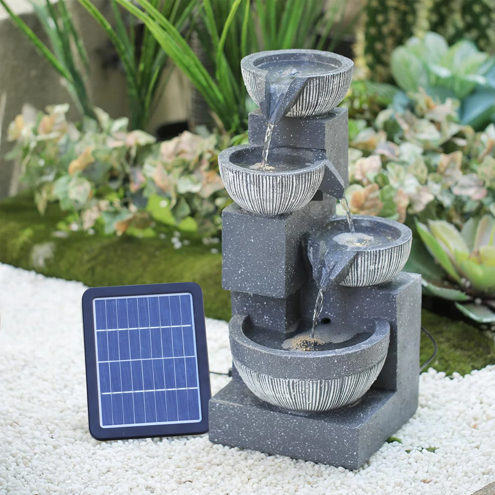 *Using solar panels for power supply, our fountain is energy-saving and environmentally friendly, you only need to face the charging plate in the direction of the sun to obtain electricity.