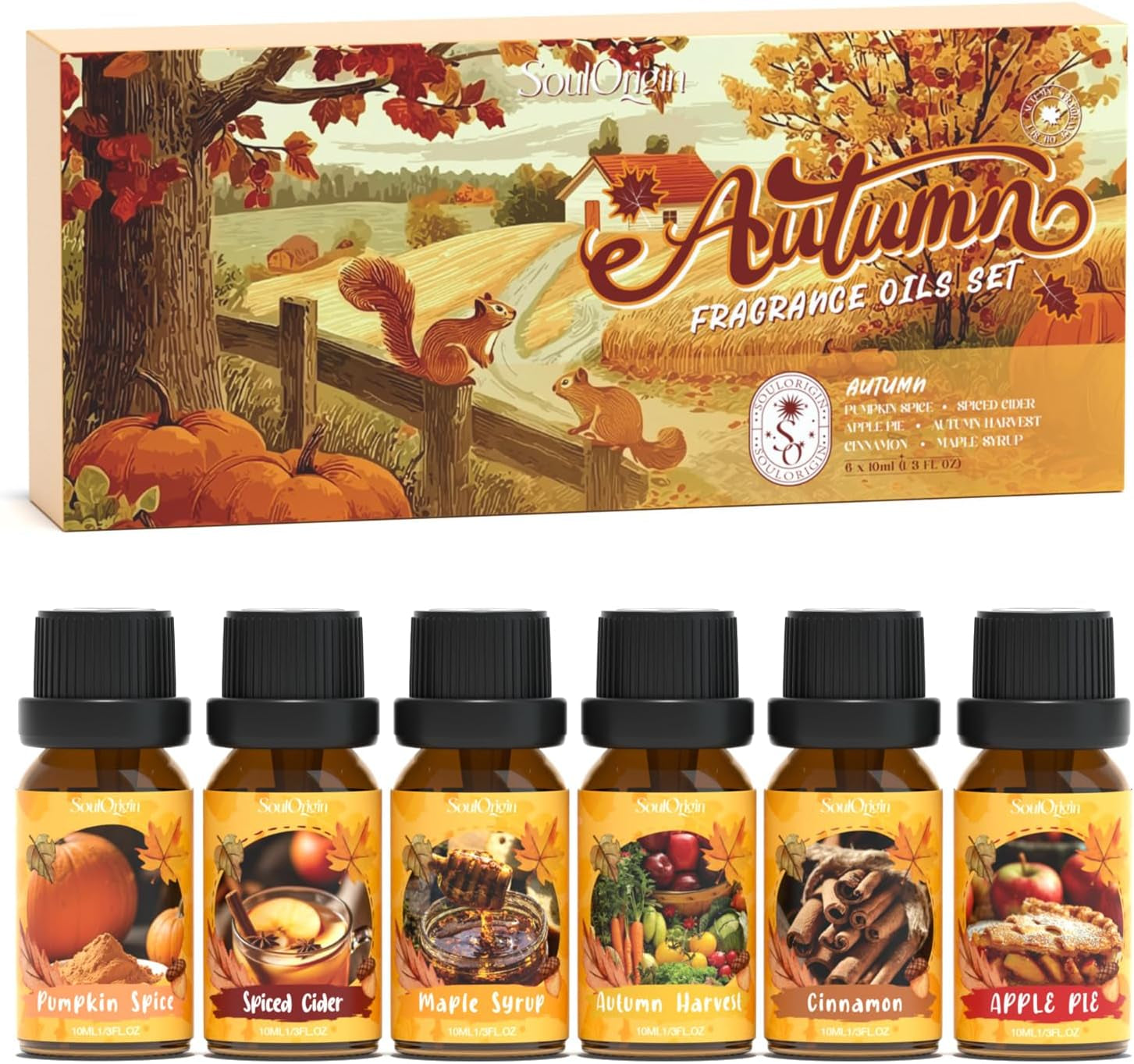 Soulorigin Autumn Essential Oils Set, Fragrance Oil Set for Oil Diffusers, Bath