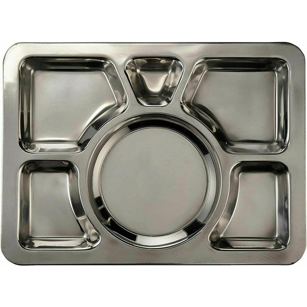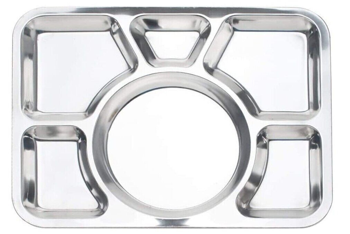 Stainless Steel 6 Compartment Thali, Food Serving Indian Dinner Plate Lunch Tray