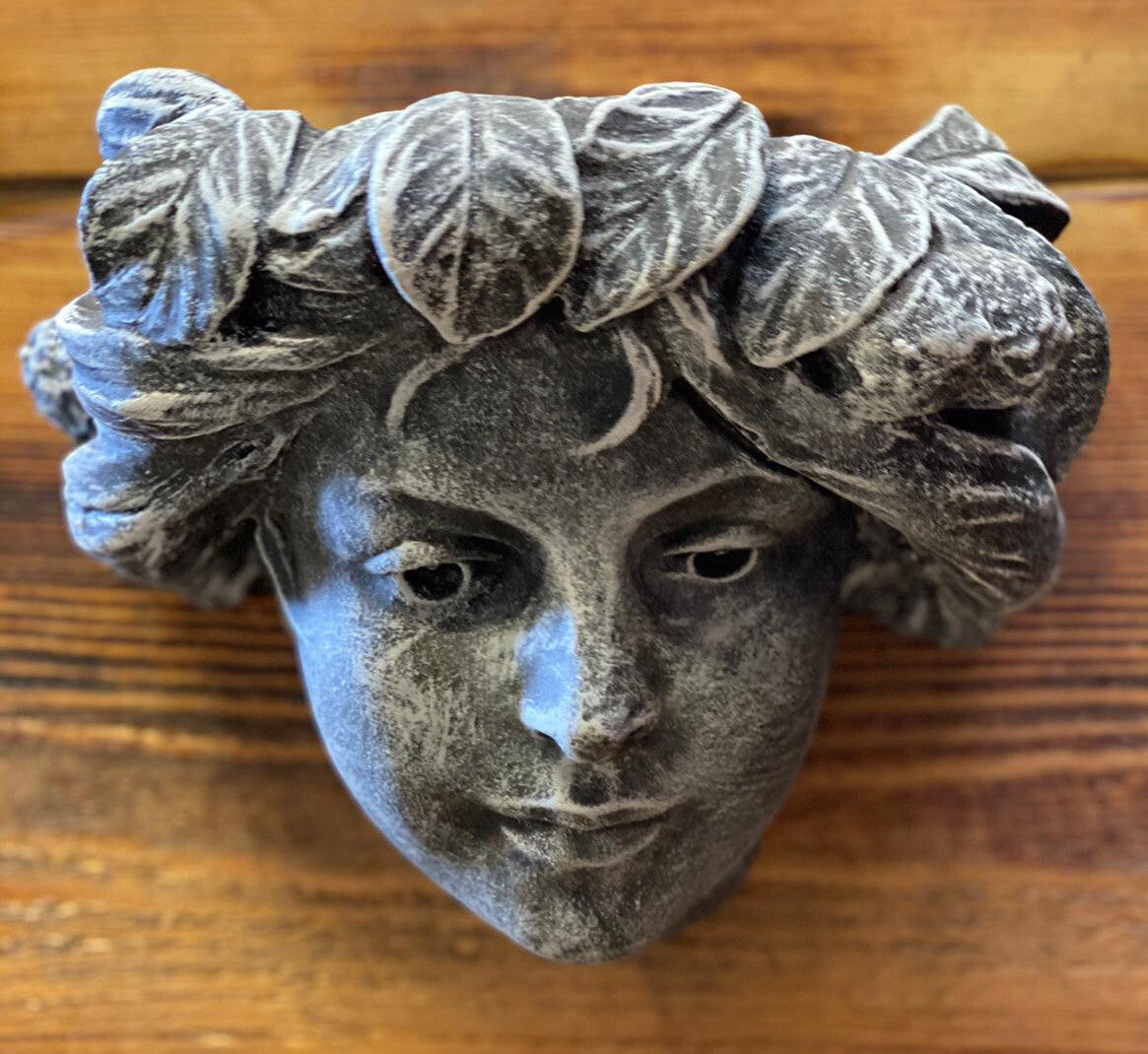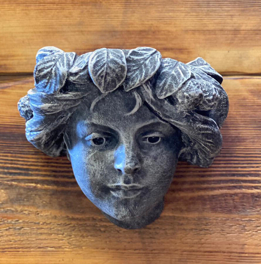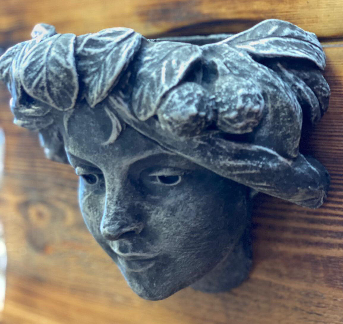 STONE GARDEN FEMALE GIRL LADY with LEAVES WALL PLAQUE PLANTER PLANT POT ORNAMENT