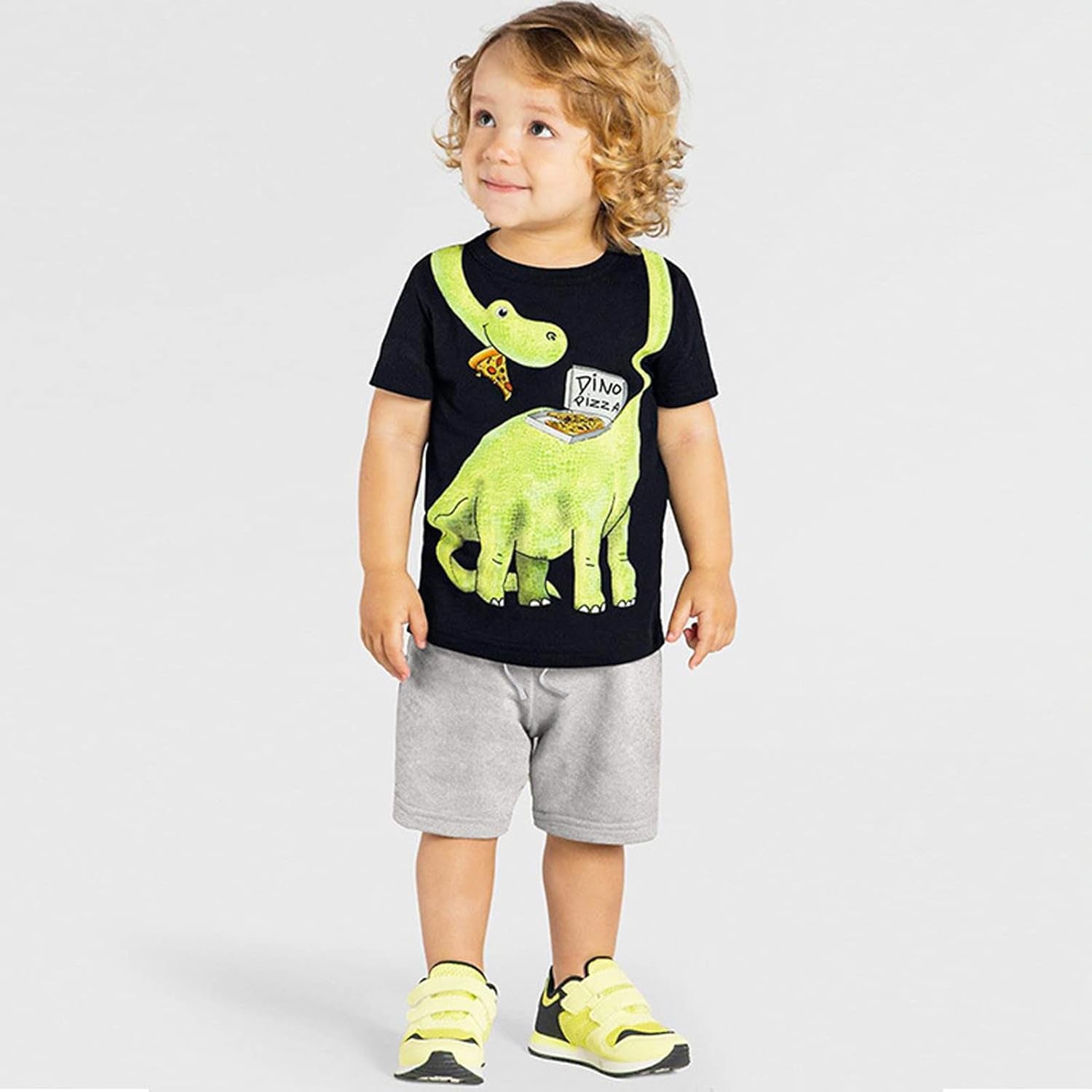 Toddler Boys Little Monster Embroidered Truck 2-Pieces Cotton T-Shirt and Shorts Summer Outfit Set
