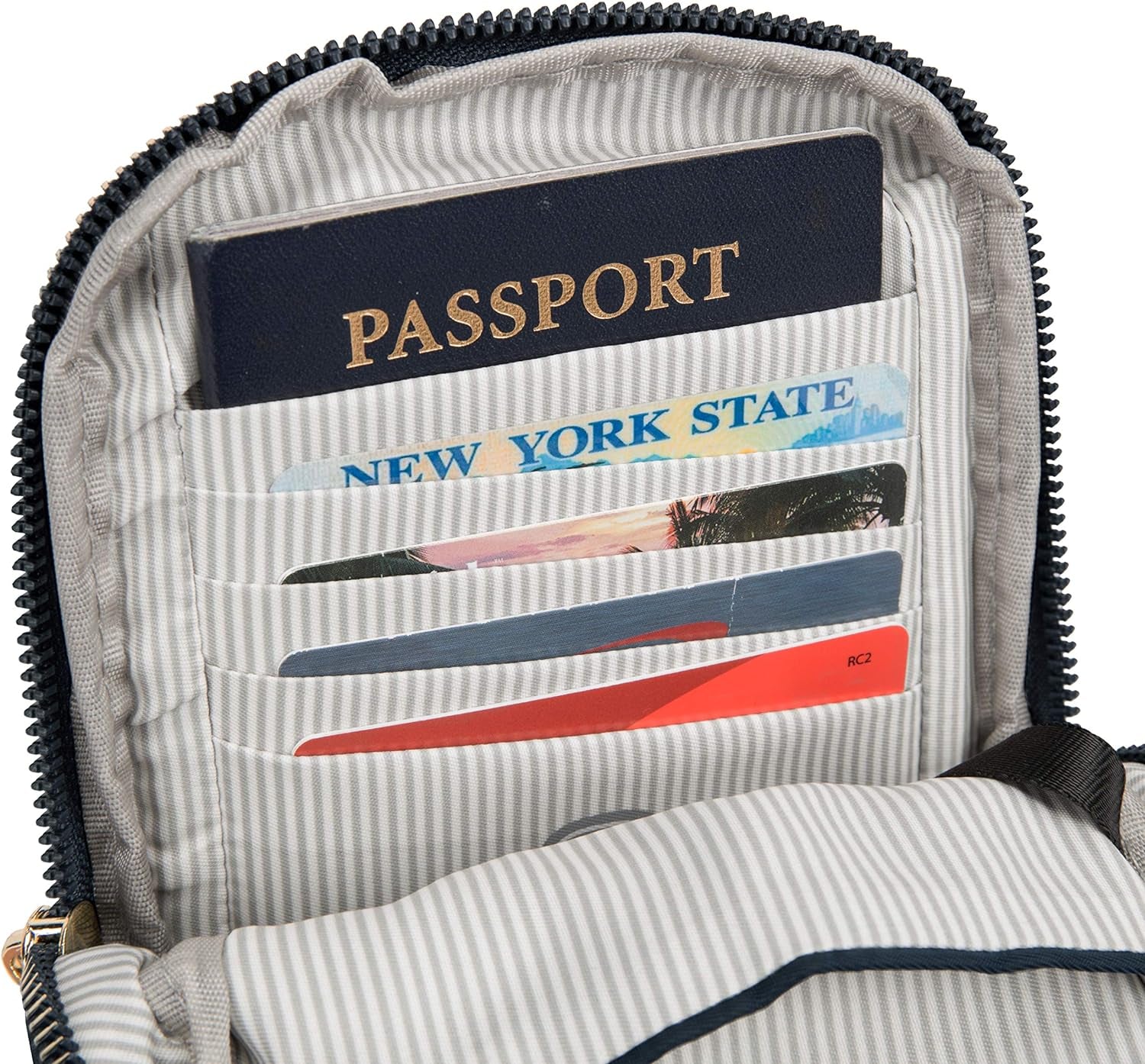 This is the ideal wallet for the minimalist who only want to carry the essentials. It is a two compartment design. The front compartment has a functional and stylish turn lock closure for security. The main compartment has locking zippers, card slots, and a wall pocket with plenty of room. The slash-resistant, adjustable and removable shoulder strap that can be secured to a stationary object to prevent a grab and go. Your personal information will stay protected with the RFID blocking technology which prevents unauthorized access to your information.