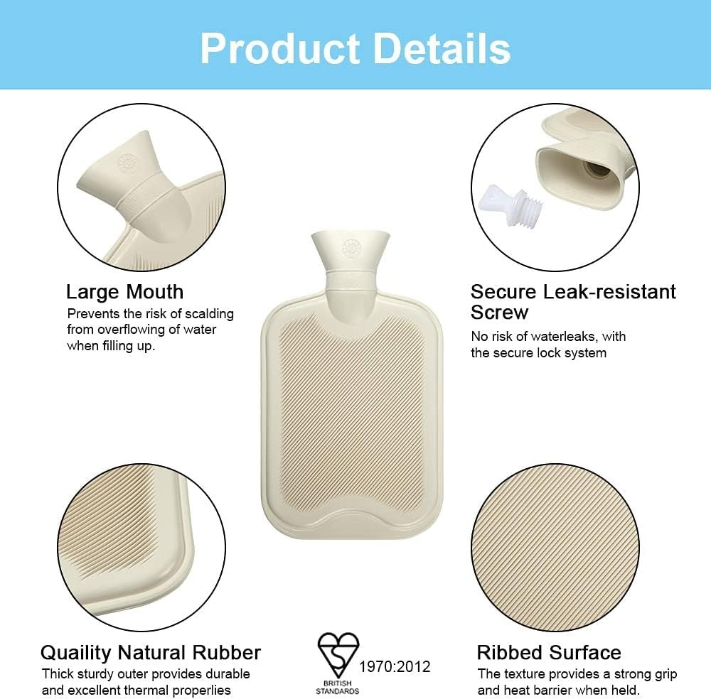 Made of high-quality rubber with a secure seal, this hot water bag ensures durability and prevents leaks.