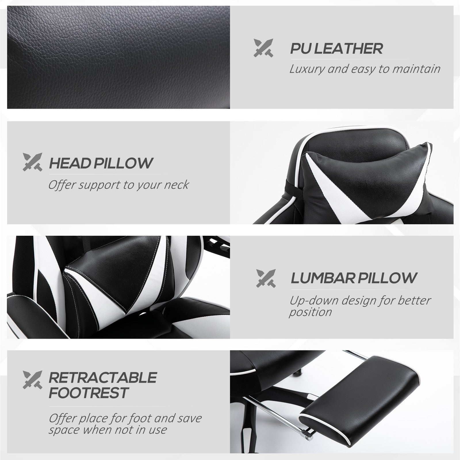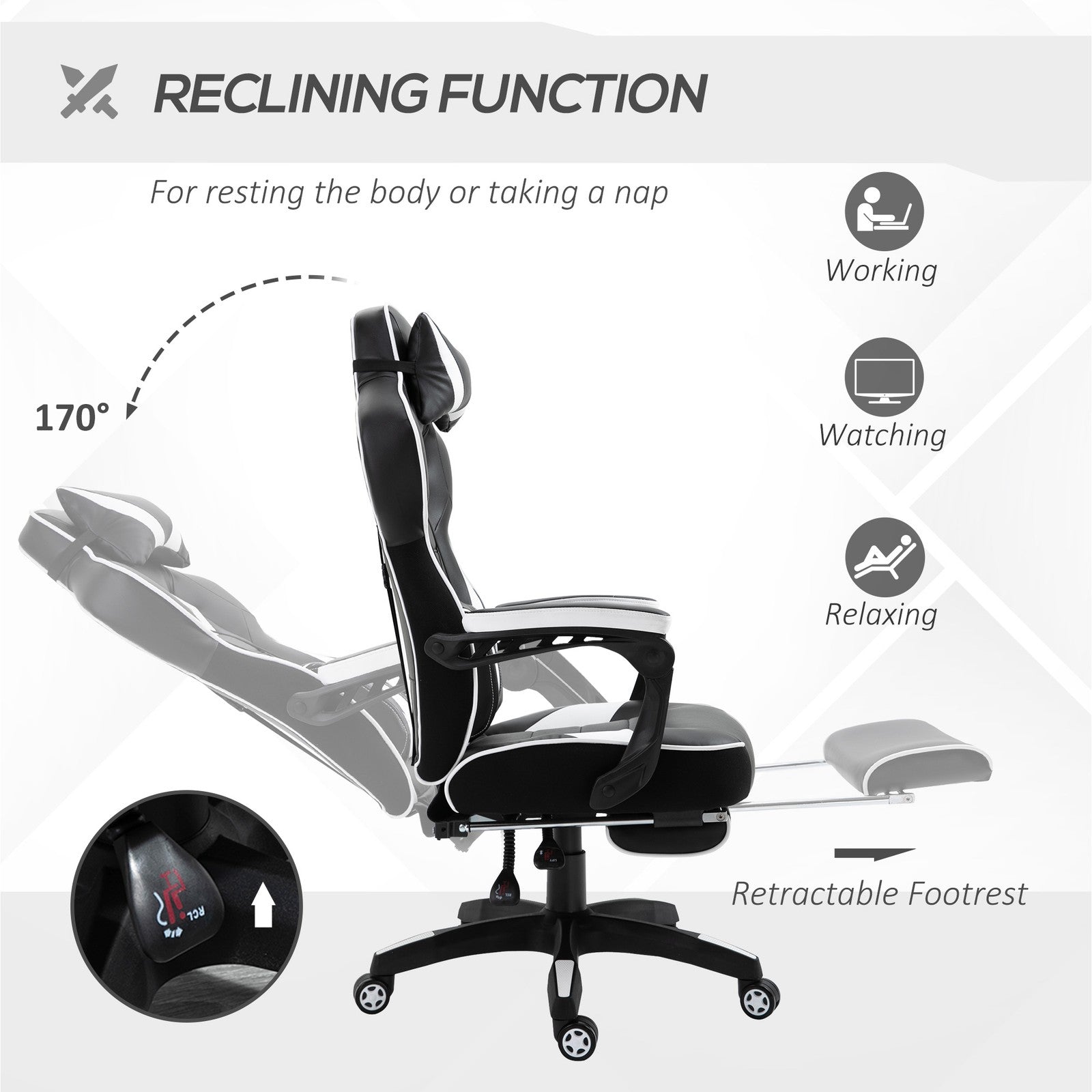 Vinsetto Gaming Chair Ergonomic Reclining Manual Footrest Wheels Stylish White