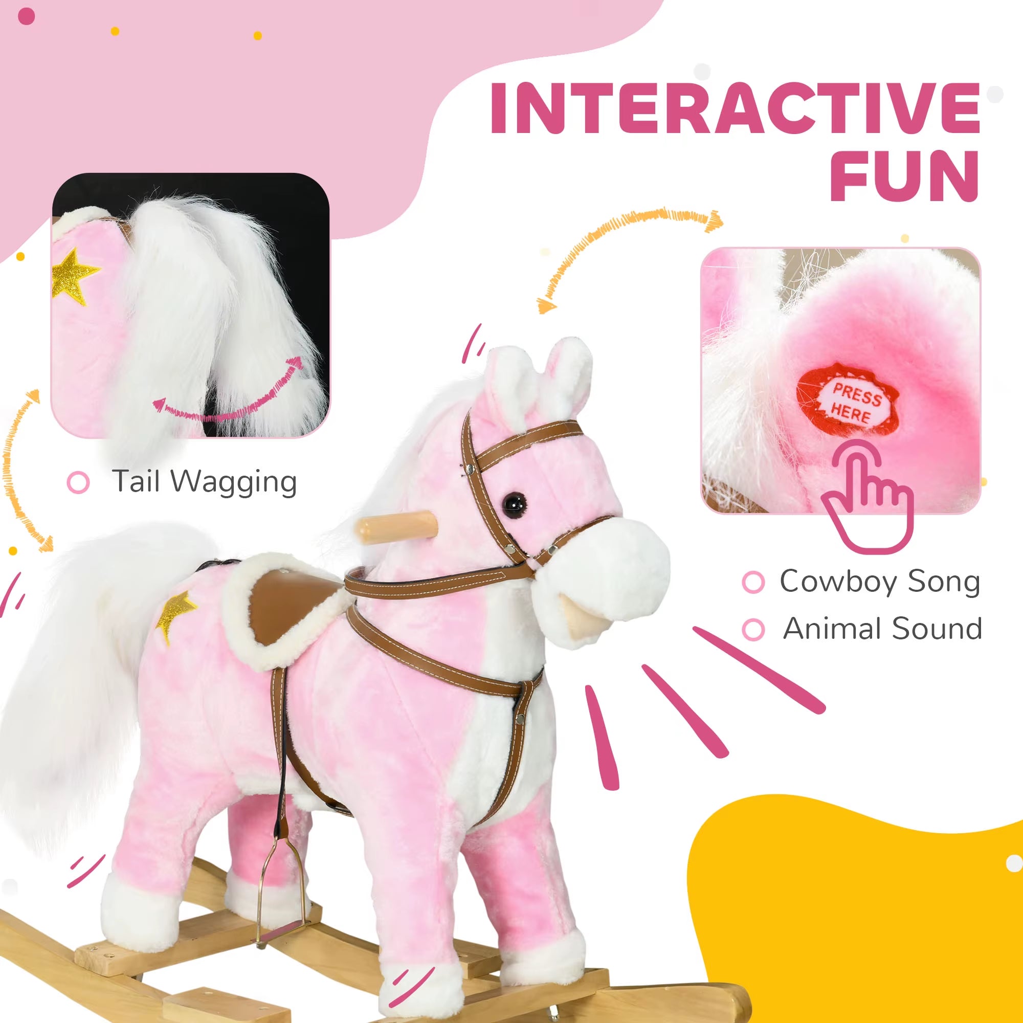 A timeless classic, the HOMCOM horse rocking toy delights children across generations. Perfectly sized for toddlers, this charming rocking toy makes neighing and galloping sounds that spark imagination. Beyond entertainment, it enhances balance and coordination, aiding early development. It promises endless fun and laughter, effortlessly keeping boredom at bay for your little ones.● Classic design offers timeless appeal